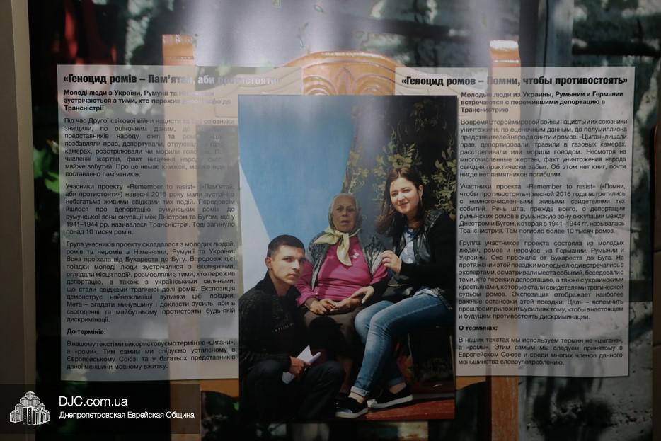 Выставка была подготовлена немецкой организацией «Bildungswerk für Friedensarbeit» («Освіта заради співпраці»), в партнерстве с «Romana Rodimata» (Бухарест), «Планета добрих людей» (Одесса) и «Українським центром вивчення історії Голокосту» (Киев), и посвящена судьбе румынских ромов, которые во время Второй мировой войны были депортированы в Транснистрию. Эта передвижная выставка включает 21 стенд с воспоминаниями, фотографиями и информационными подборками.