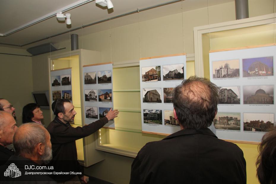 Выставка состоит из 13 стендов, представленных согласно географическому расположению. Выставку «Синагоги Украины – центры духовной и культурной жизни» представил директор Еврейского этнографического музея города Жмеринка Евгений Шнайдер, который провел первую экскурсию. Среди собравшихся были ученики старших классов и училищ из города Кременчуга, принимающие участие в творческих конкурсах и семинарах, проводимых Украинским Институтом Изучения Холокоста «Ткума», лидеры и активисты еврейской общины, представители широкой общественности.