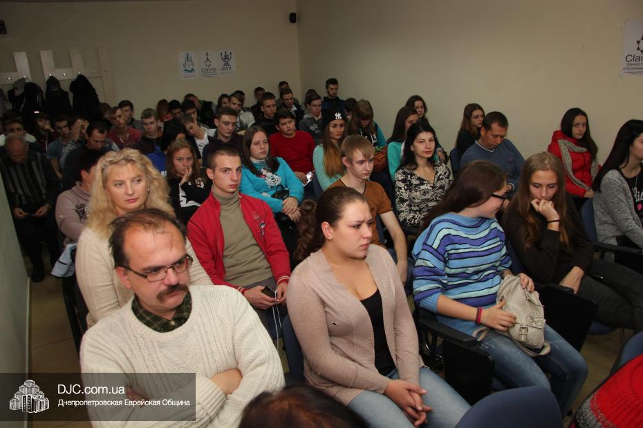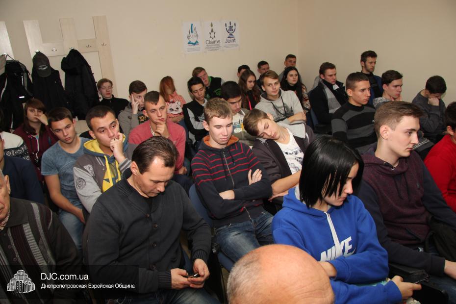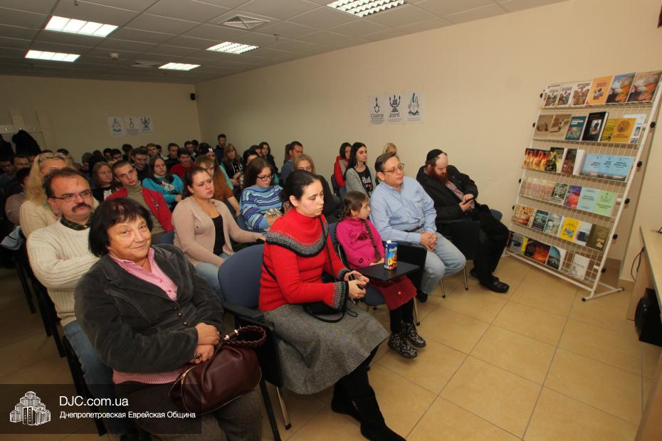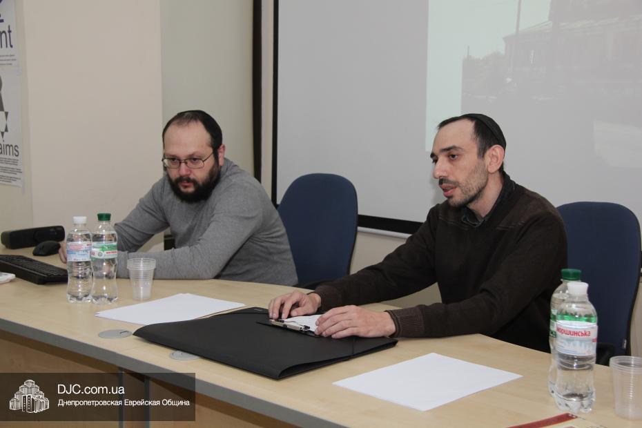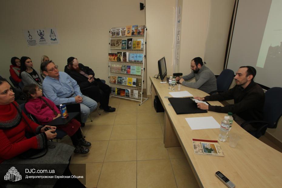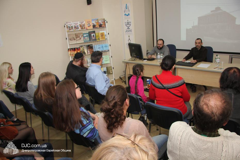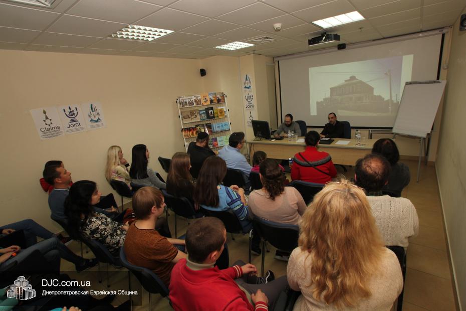 Затем, в рамках проекта УИИХ «Ткума» «Днепровский исторический клуб», Евгений Шнайдер провел познавательную лекцию, рассказывающую не только о синагогах, но и об истории развития еврейской жизни на территории современной Украины, и ее особенностях в разных регионах.
