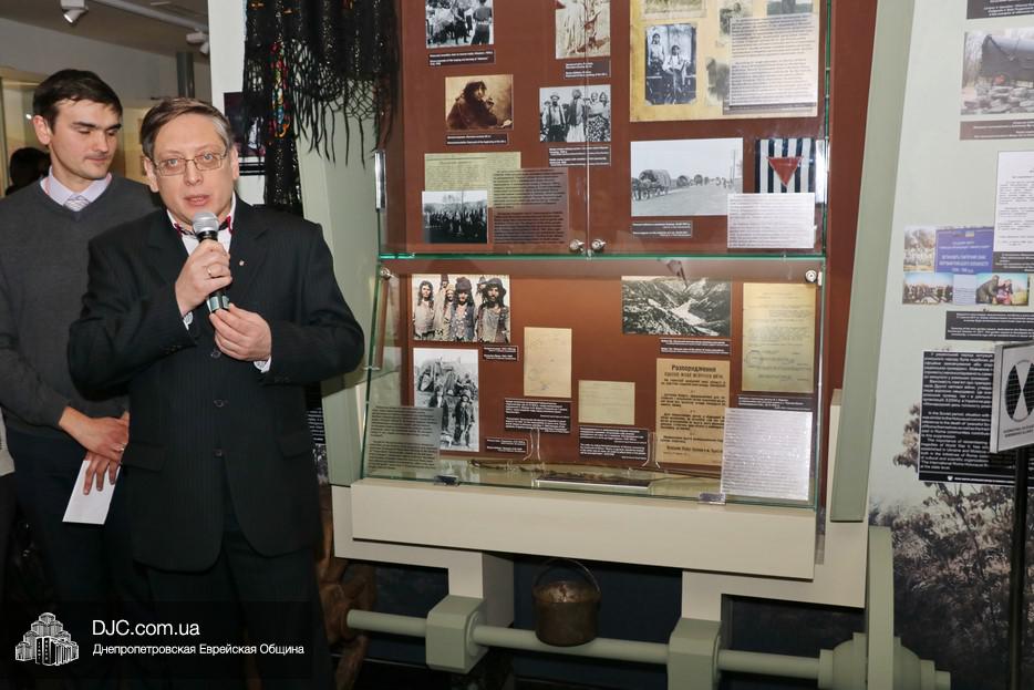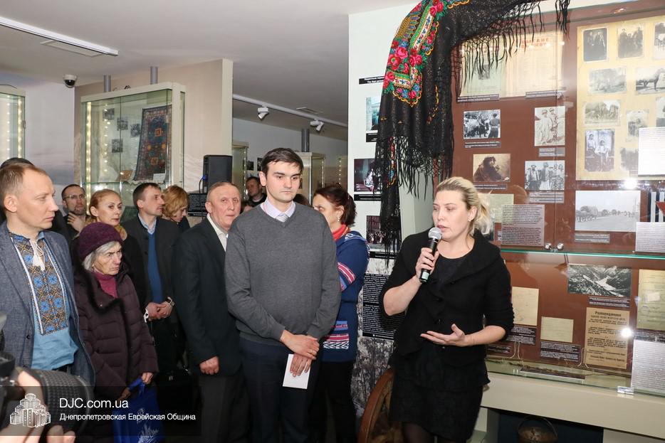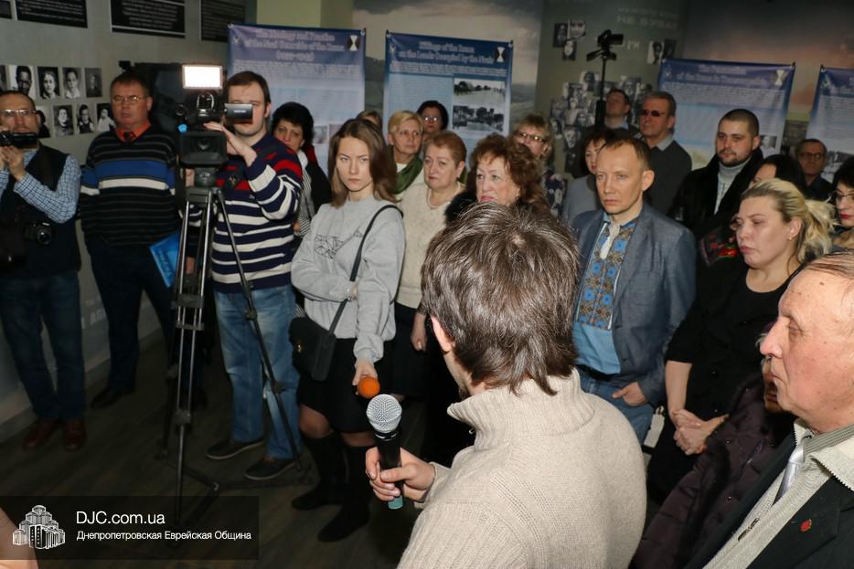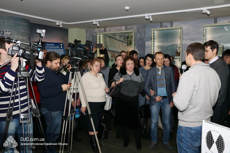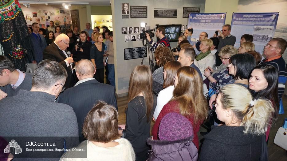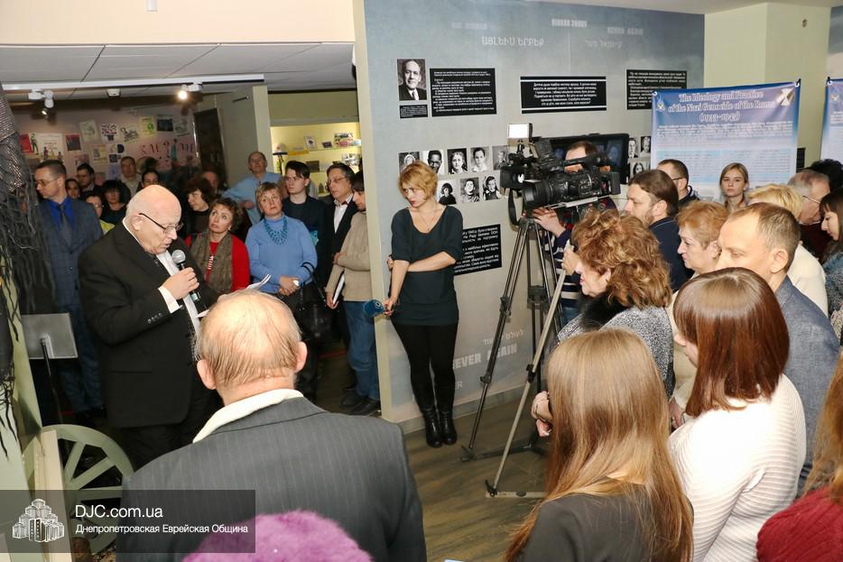 На открытии экспозиции выступили: Генеральный консул Федеративной Республики Германия доктор Вольфганг Мессингер; заместитель директора департамента образования и науки ДнепрОГА Антон Демура; декан исторического факультета Киевского Национального Университета имени Тараса Шевченко, доктор исторических наук Иван Патриляк; старший научный сотрудник Института украинской археографии и источниковедения имени Михаила Грушевского НАН Украины, доктор Наталия Зиневич; директор Украинского института изучения Холокоста «Ткума» и Еврейского Музея, доктор Игорь Щупак.