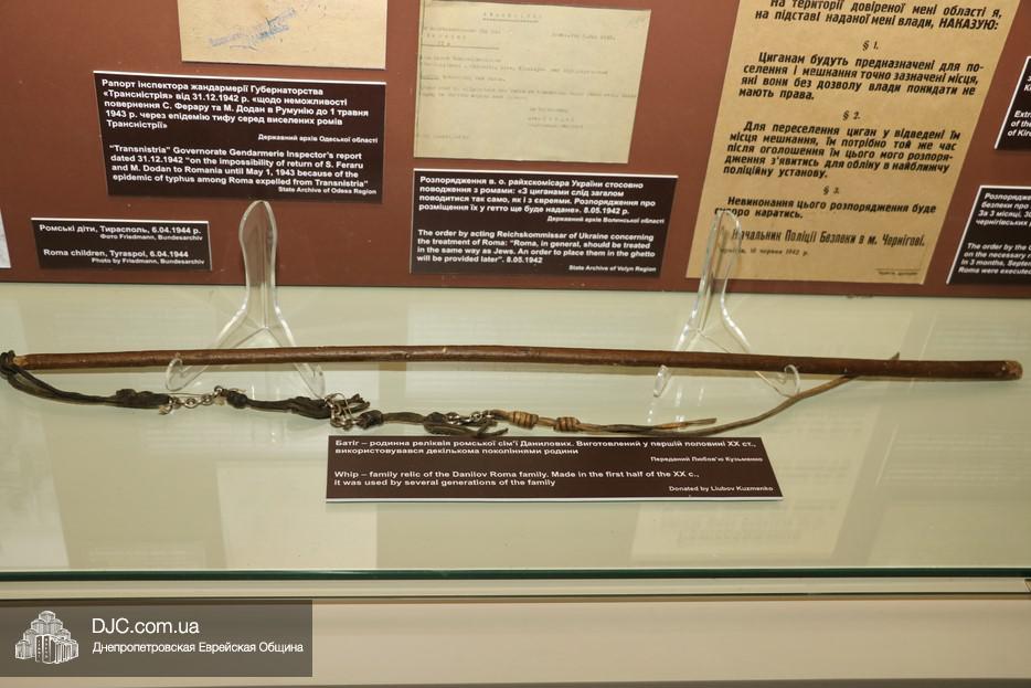 «Уникальные экспонаты, переданные в дар Музею представителями ромской общины нашего города, семьей Кузьменко, – отметил на церемонии Егор Врадий, – это семейные реликвии, среди которых ромский батог, которому больше 100 лет, а также документы и фотографии, которые и стали основой первой в Украине постоянной экспозиции, посвященной геноциду ромского народа, организованного и осуществленного нацистами в 1935-1945 годах на территории Германии, стран-союзников Третьего рейха и оккупированных стран».