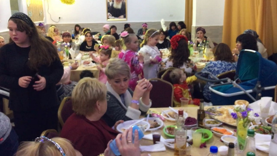 Уютный, прекрасно и ярко оформленный банкетный зал Хабада не мог вместить всех желающих – как говорится, «яблоку некуда не было упасть». Пришли более 100 человек (столько можно разместить в этом зале) – семьи с детьми, люди всех возрастов, пришли в карнавальных костюмах в соответствии с еврейской традицией, а главное  – в хорошем настроении.