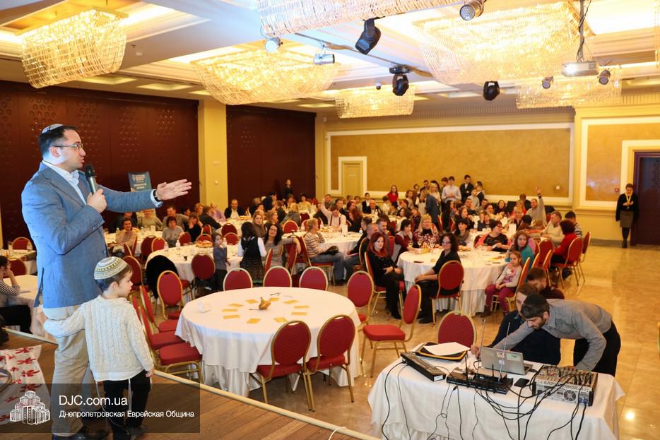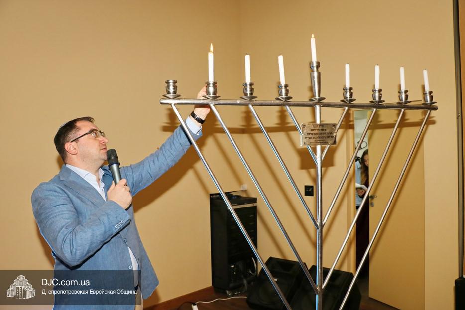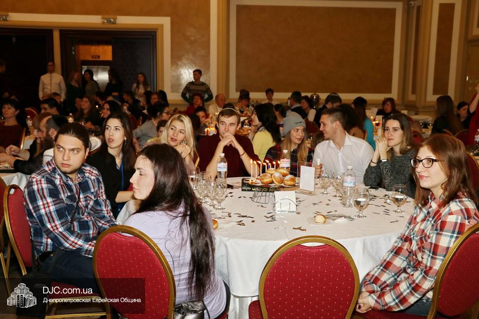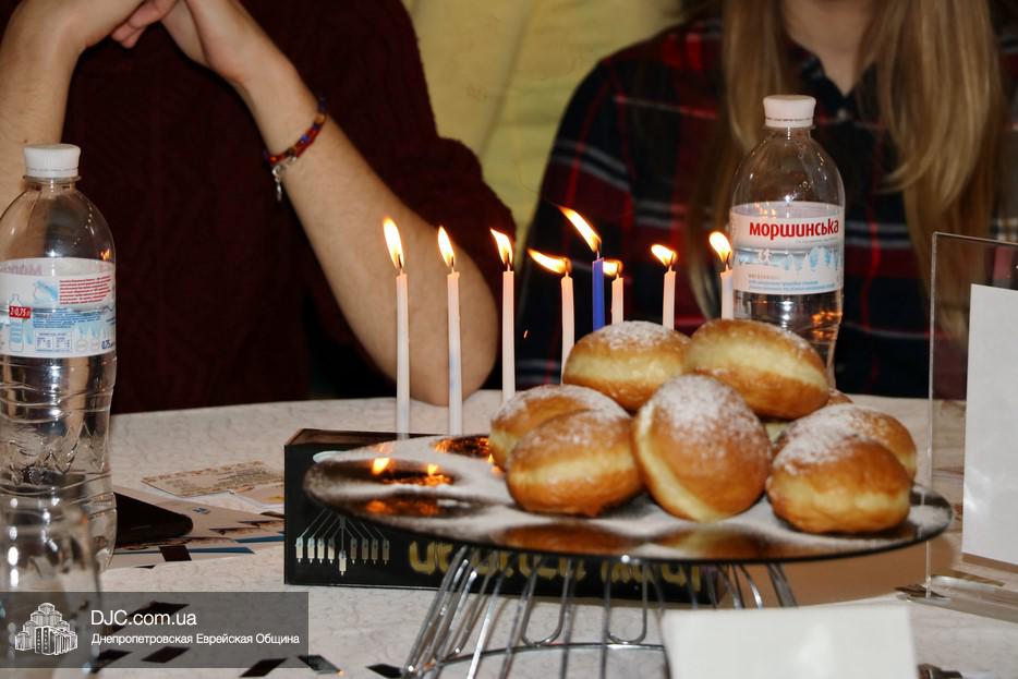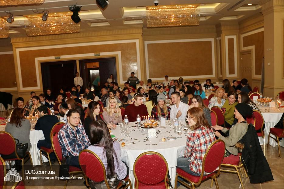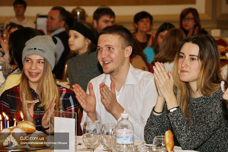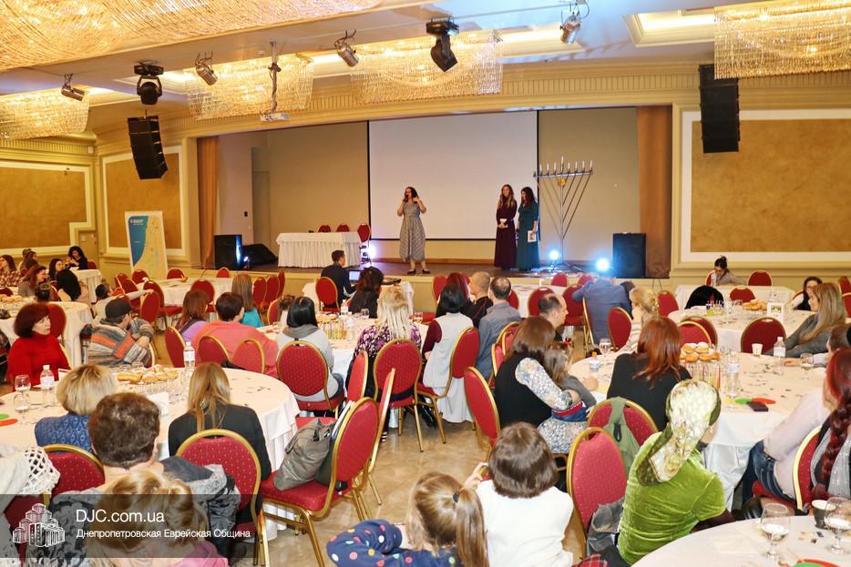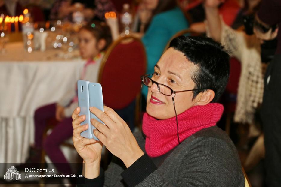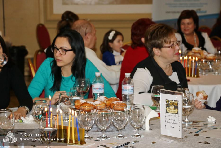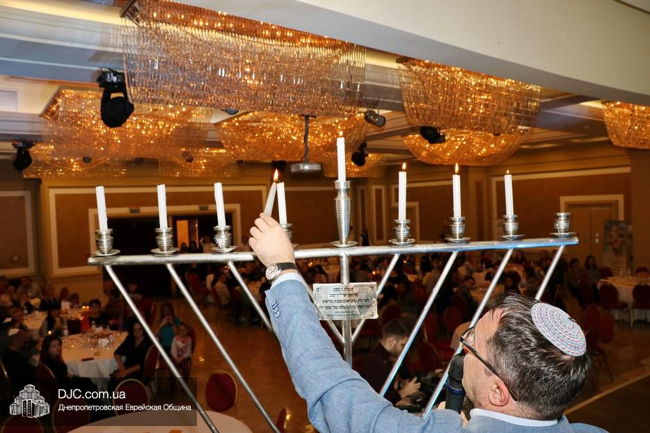 Собравшихся, среди которых были участники программ «Сохнута», программы «Маслуль» и друзья представительства Еврейского Агентства, тепло поприветствовала Глава представительства филиала «Сохнут-Украина» в Днепре Натали Набитовски, а Макс Лурье, Глава представительства в Харькове, заметив, что на каждом столе есть своя ханукия, предложил провести церемонию зажжения синхронно с тем, как он будет зажигать большую ханукию на сцене.