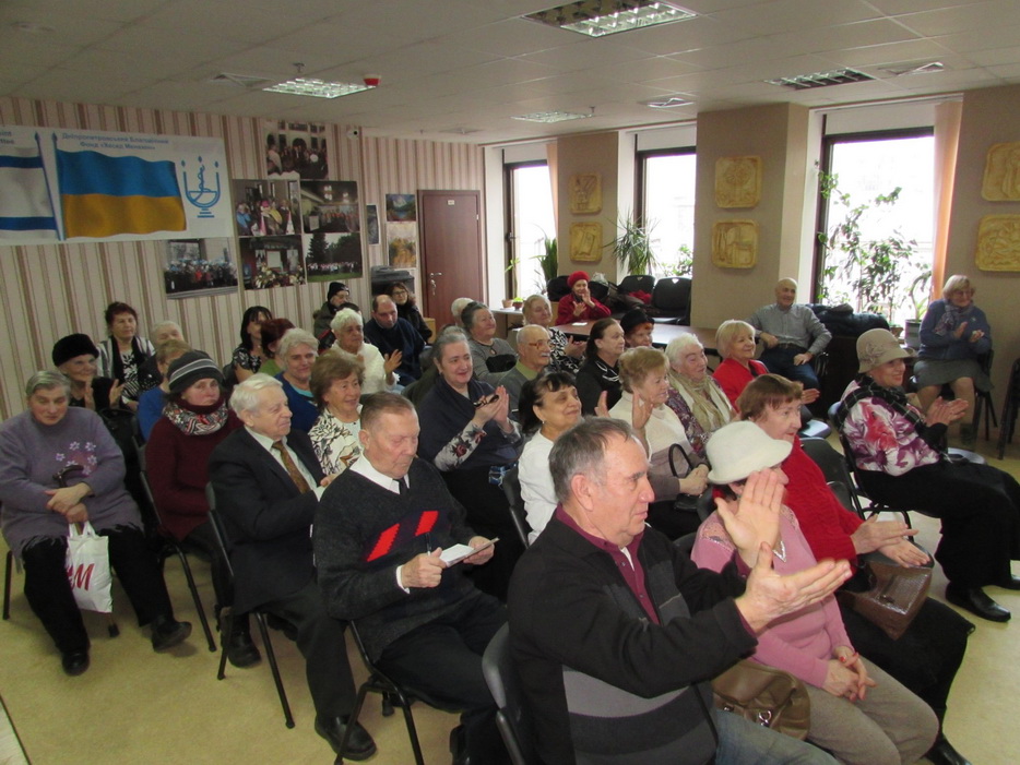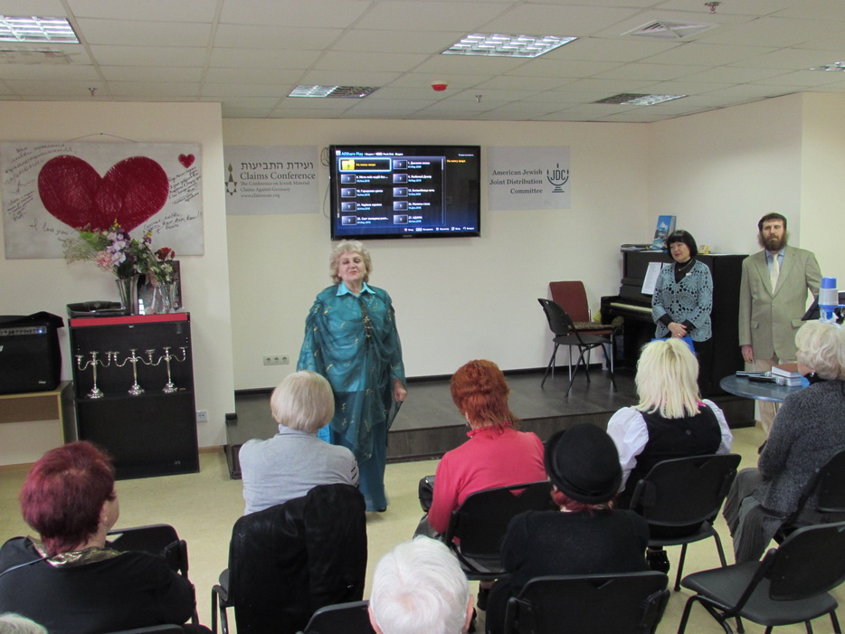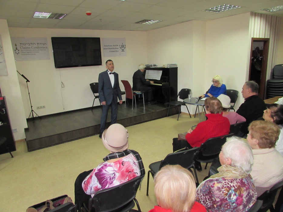 В первые дни Адара также прошли два особых концерта. Один из них прошел как творческая встреча с волонтером клубных проектов Владимиром Коваленко, в которой он исполнял песни из популярных мюзиклов (концертмейстер Владимир Елисеев). «Всем очень понравилось, особенно когда на бис Владимир исполнил песни из мюзикла «Скрипач на крыше», литературную основу которого составили рассказы Шолом-Алейхема о Тевье-Молочнике, а в конце встречи Владимир пообещал, что в скором времени представит программу, основанную на песнях из репертуара сестер Берри», – рассказала нашему сайту Алина Кулюхина.