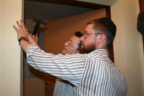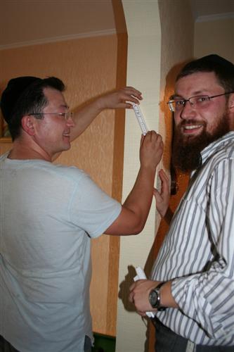 Первым участником акции, которому прикрепили мезузы к косякам дверей, стал Цви Гирш Колодач, талантливый руководитель и в прошлом активист еврейской жизни Днепропетровска, который сейчас живет в Киеве.