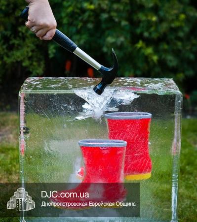 Символом воскресной «Прогулки ради Тепла» стали красные резиновые сапоги в ледяном кубе, который дети стремились растопить теплом своих сердец, а взрослые, объяснили им, что даже искреннее желание и стремление должно иметь материальную основу, его надо подкреплять более практически – дрелью, а иногда и ледорубом, в роли которого в этот раз выступил молоток.