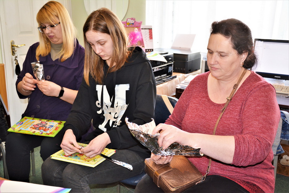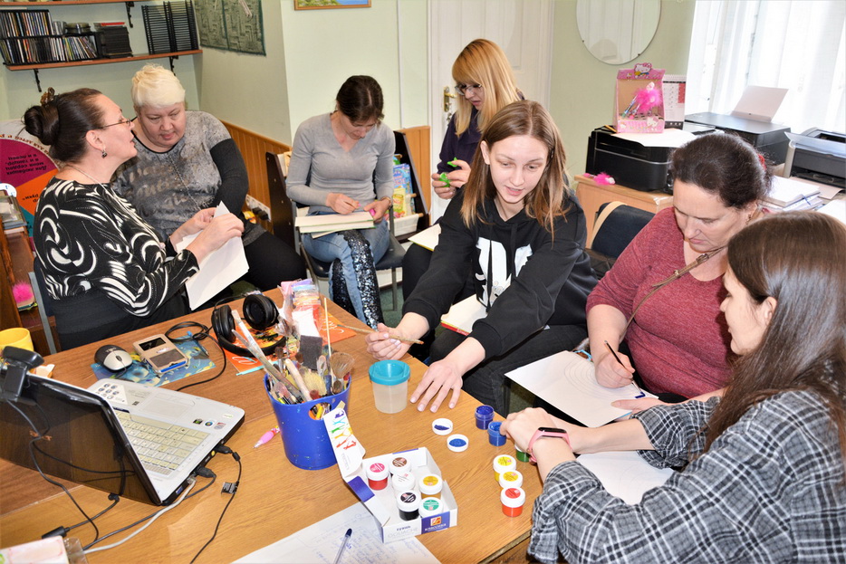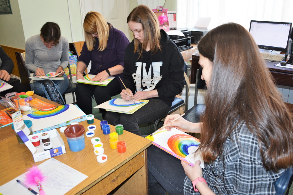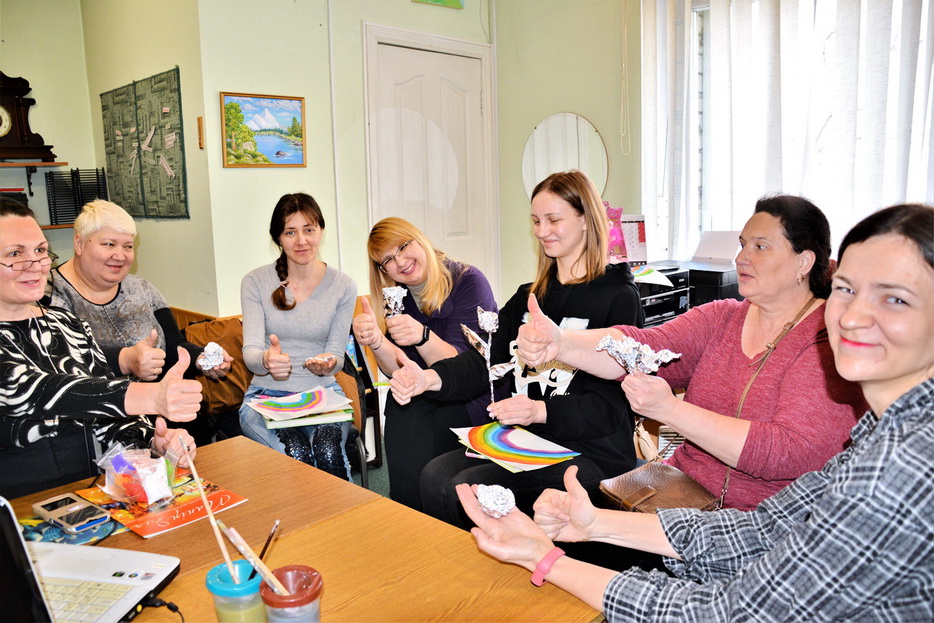 Тому групові заняття вирішено проводити у змішаному форматі, як офлайн, так і частина жінок долучається до психологічної групи онлайн. Такі зустрічі мають великий психотерапевтичний ефект. Спокійний, розмірений тон спілкування Вікторії Потебенько, толерантність до будь-яких висловлювань та думок, підтримка та заохочення рефлексії учасників створюють особливу комфортну атмосферу. Для того, щоб розкрити особистість кожної учасниці та спонукати до діалогу, психолог використовує проективні технології: арт-терапію, малювальні тести, роботу з фольгою та багато інших прийомів.