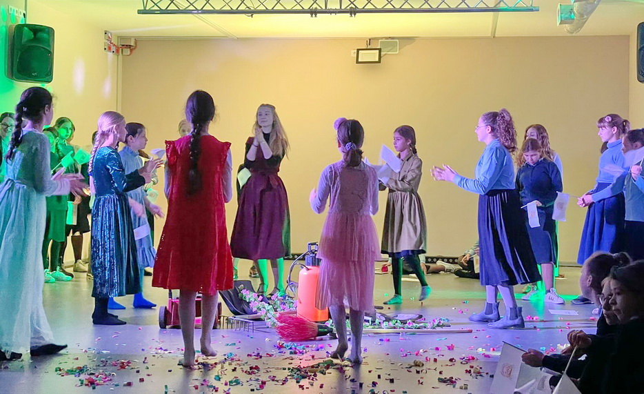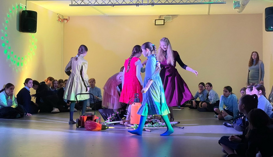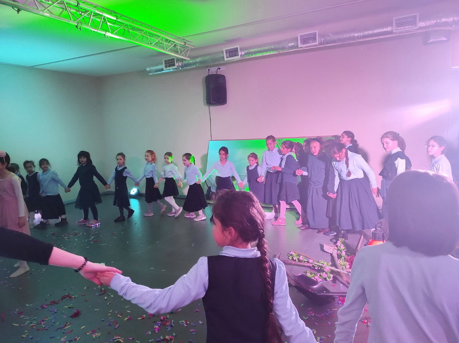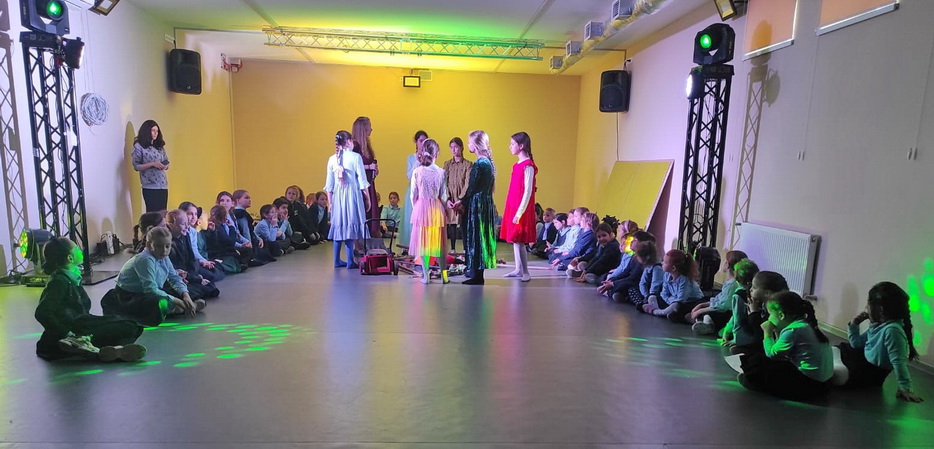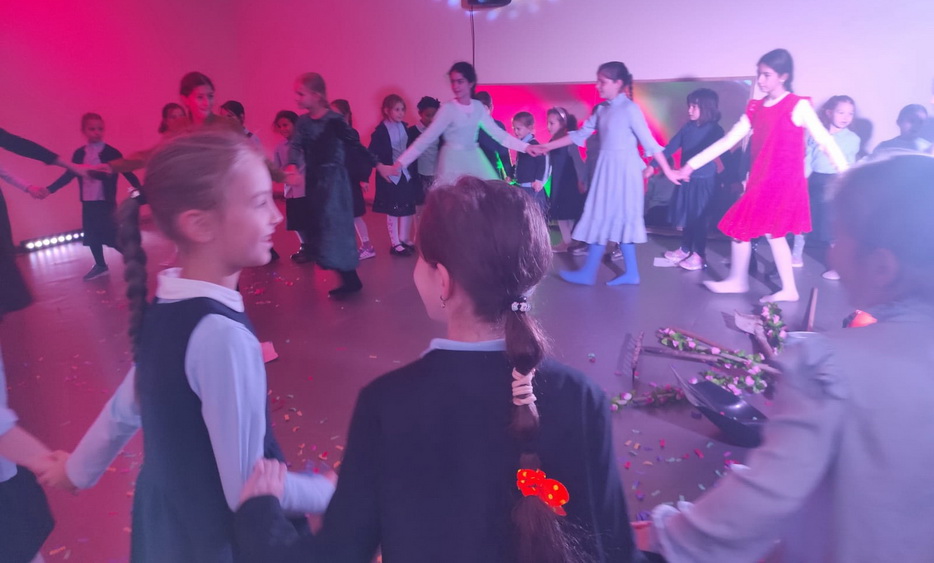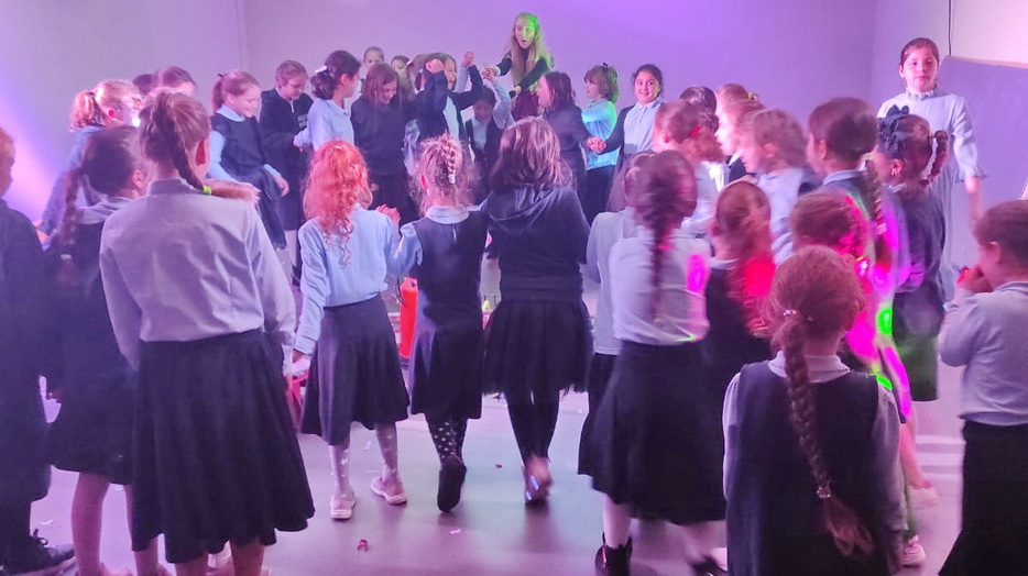 Затем все ученицы участвовали в танцевальном батле. Девочки разделились на две команды. Участницы команд по очереди показывали друг другу танцевальные движения, которые нужно было повторить, а затем все объединились в общем танце.