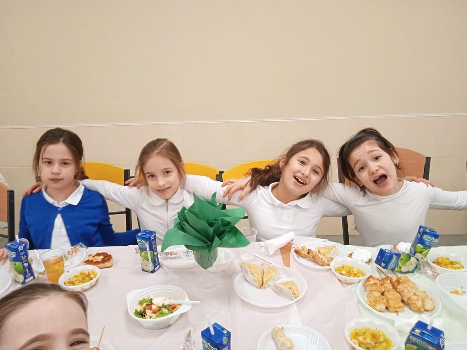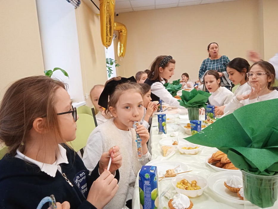 «После завершения большого мероприятия, проходившего в зале «Синай» крупнейшего в мире еврейского центра «Менора», все воспитанницы и преподаватели вернулись в здание махона, который носит имя праведной ребецн Хаи-Мушки, – рассказала нашему сайту Эдна Юдович, – и для наших учениц прошли фарбренгены: младшие собрались в столовой, а старшие – как всегда, на первом этаже.