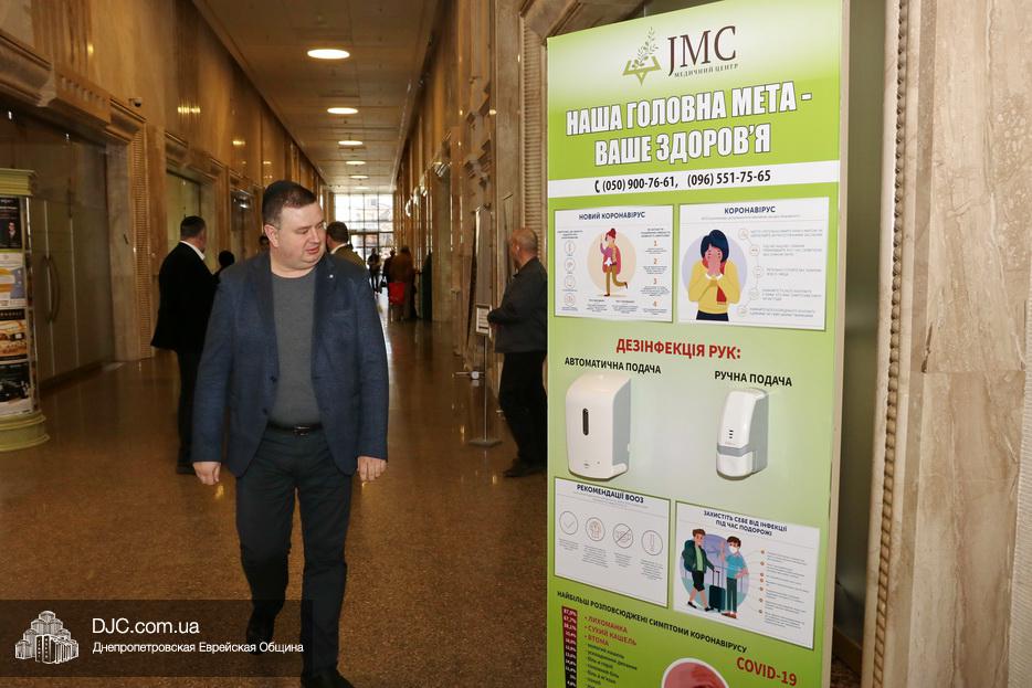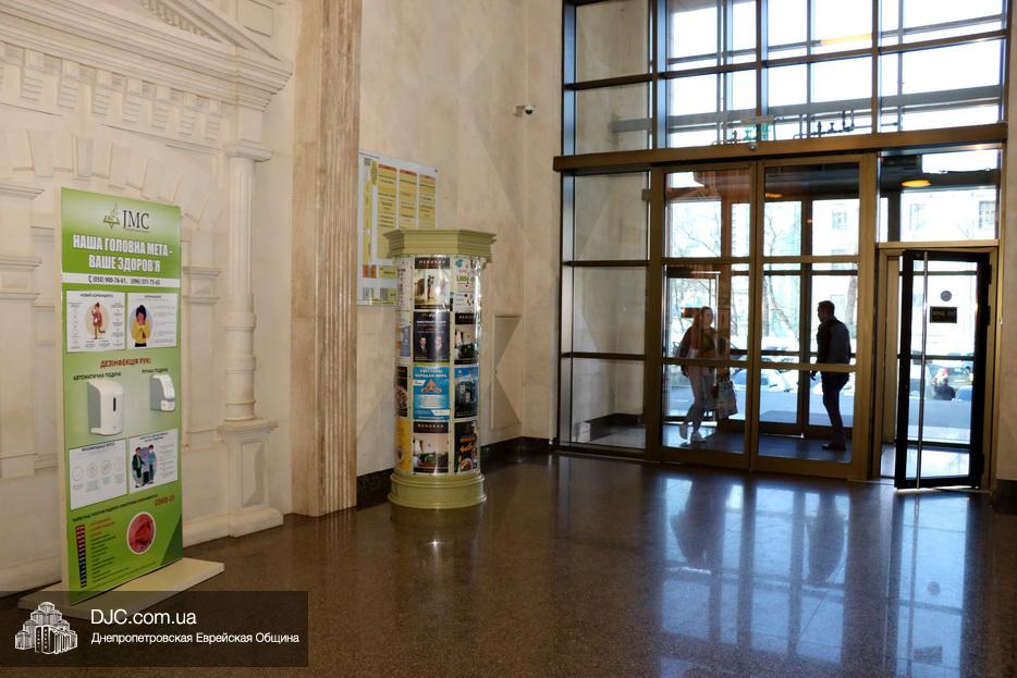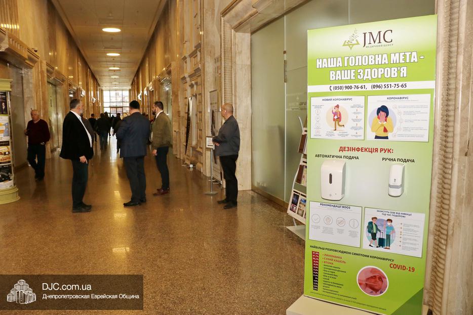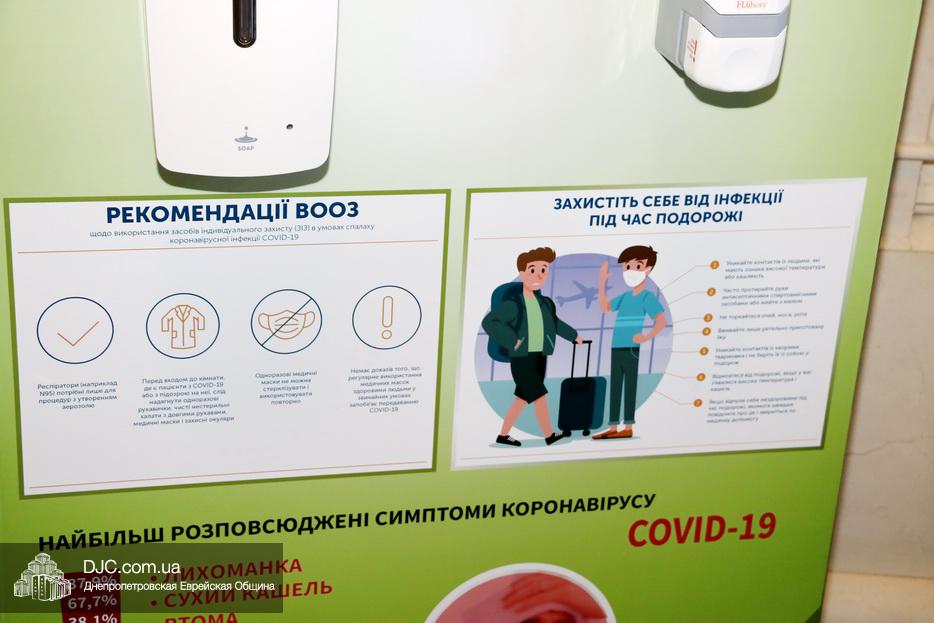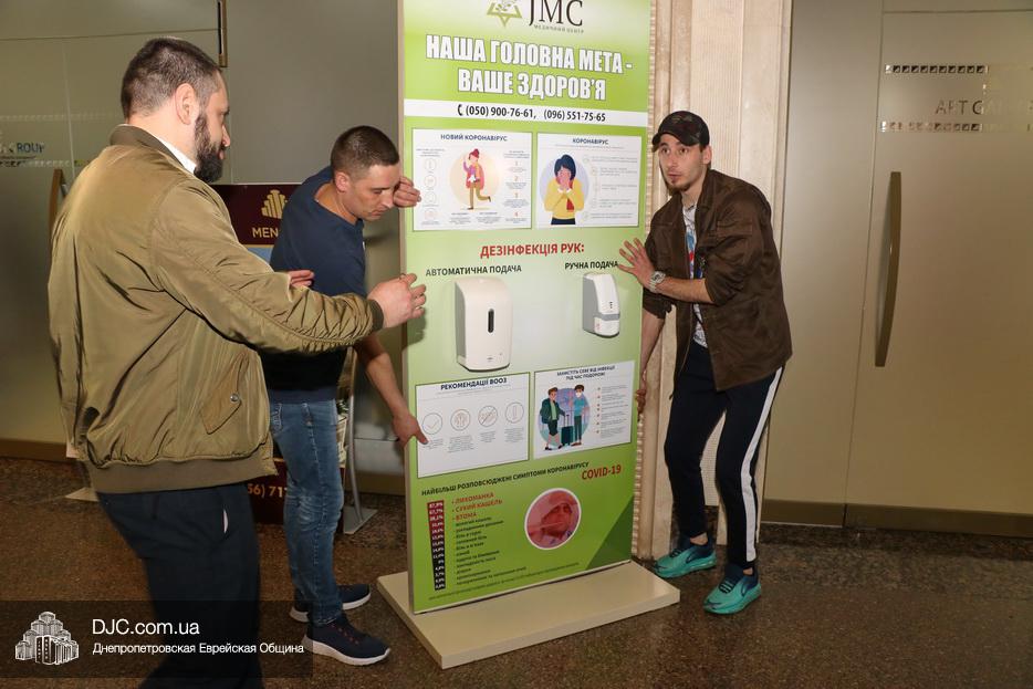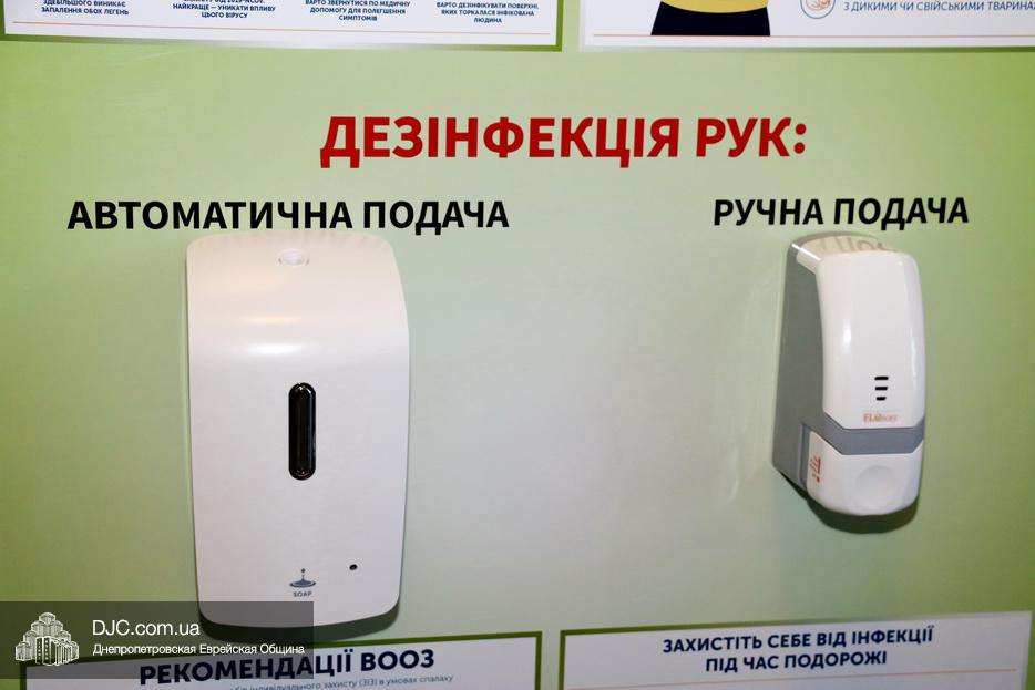 В соответствии с разработанным Еврейским медицинским центром «JMC» комплексом профилактических мероприятий по предотвращению распространения коронавирусной инфекции COVID-19 в еврейской общине Днепра установлены диспенсеры для дезинфекции рук.