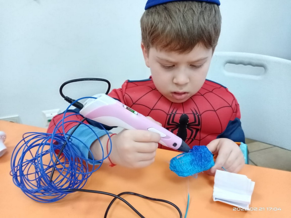 Воспитанники, посещающие международный проект «Smart J», реализуемый совместно с Еврейской общиной Днепра, для школьников, имеющих еврейские корни и учащихся в общеобразовательных заведениях города, в рамках обучающего модуля IT с большим интересом и успехом проходят курс «3D моделирование», на котором учатся работать с 3D ручкой.