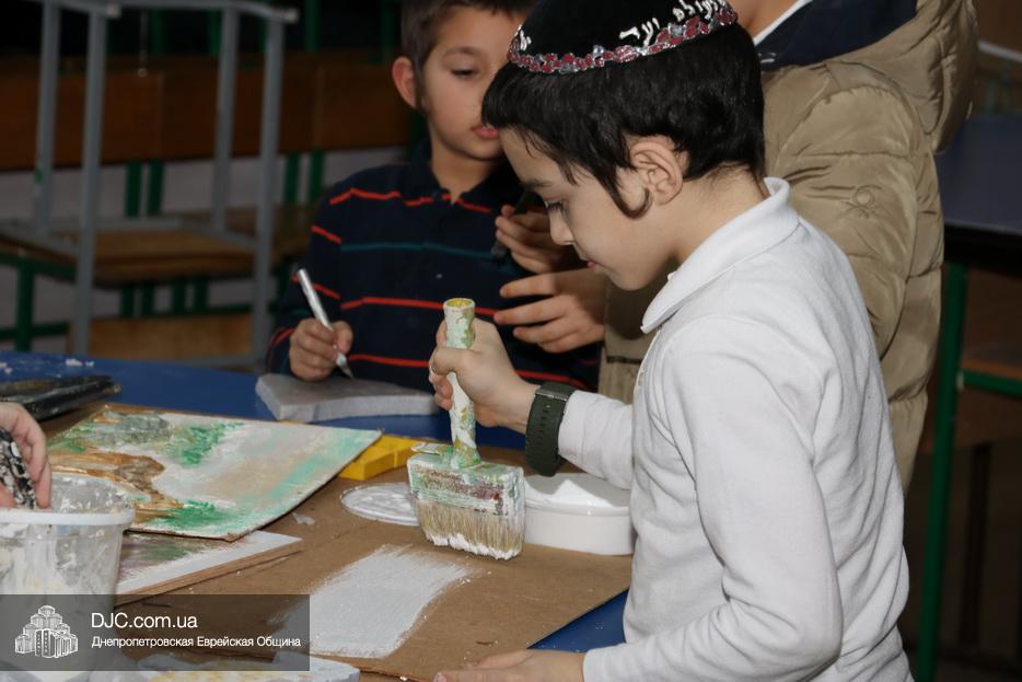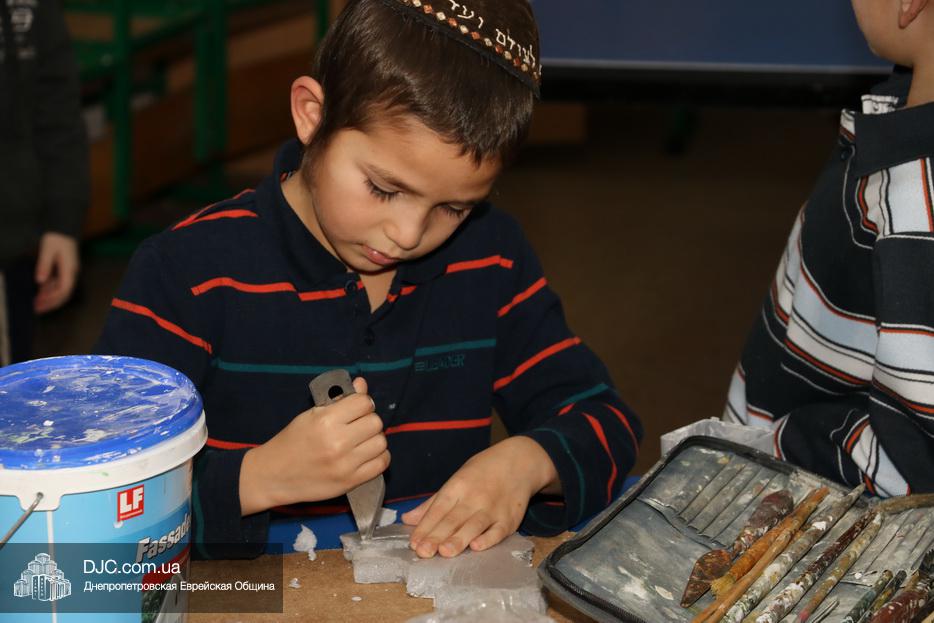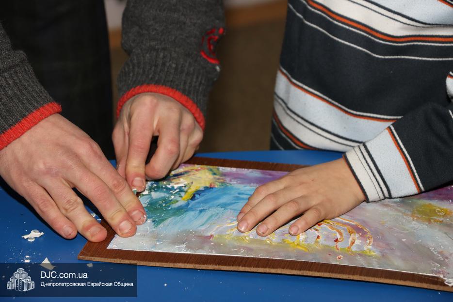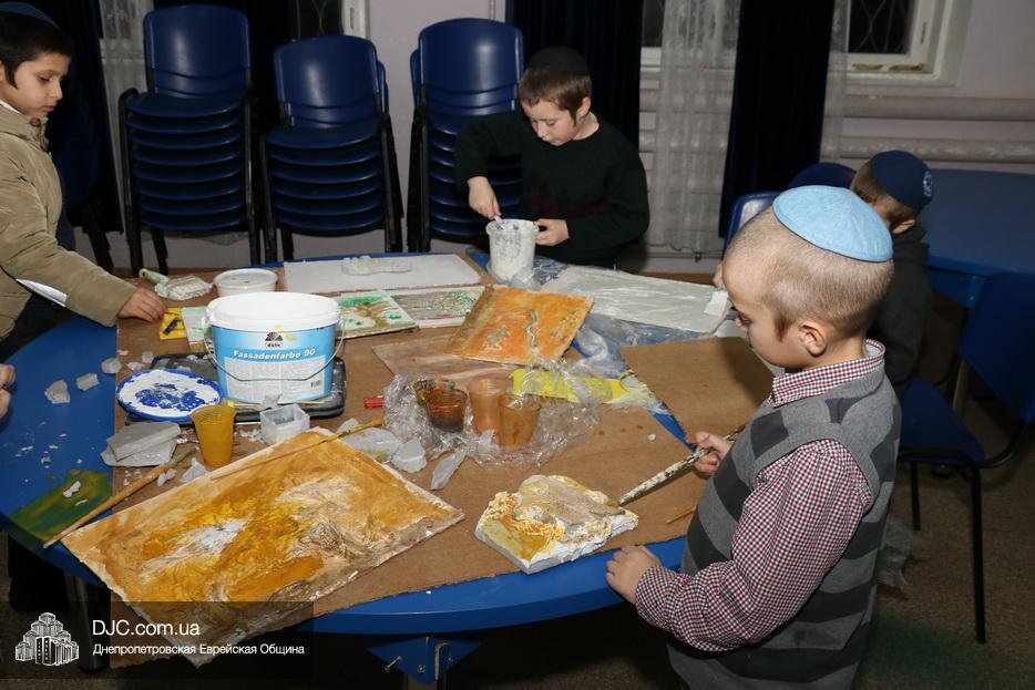 В иешиве-ктана Днепра работает кружок по созданию цветных барельефов, на котором мальчики младшей возрастной группы учатся создавать изысканные предметы интерьера.