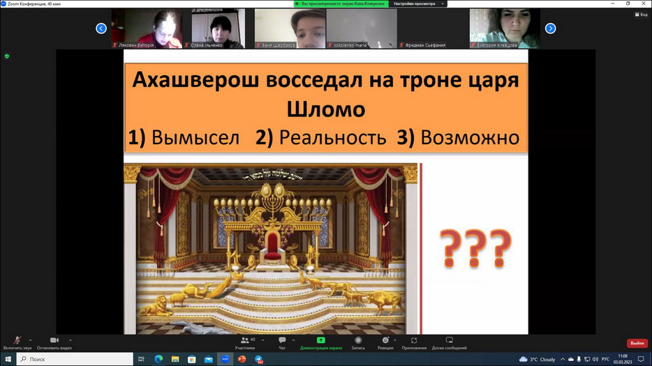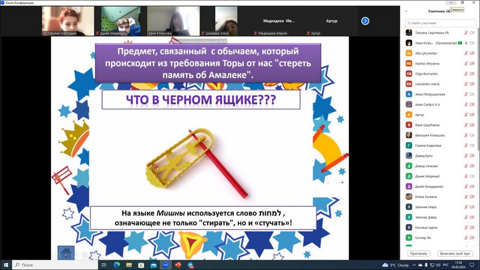 В преддверии праздника Пурим в еврейской школе прошли онлайн классные часы