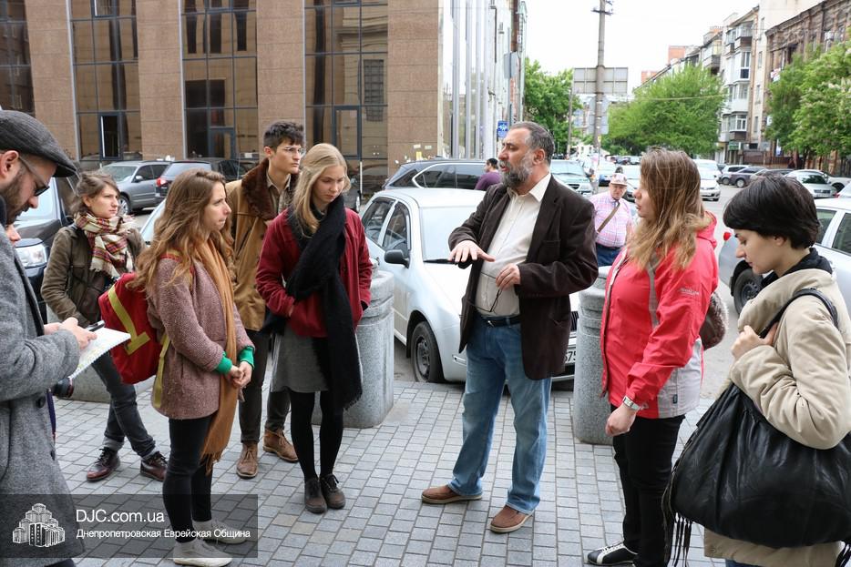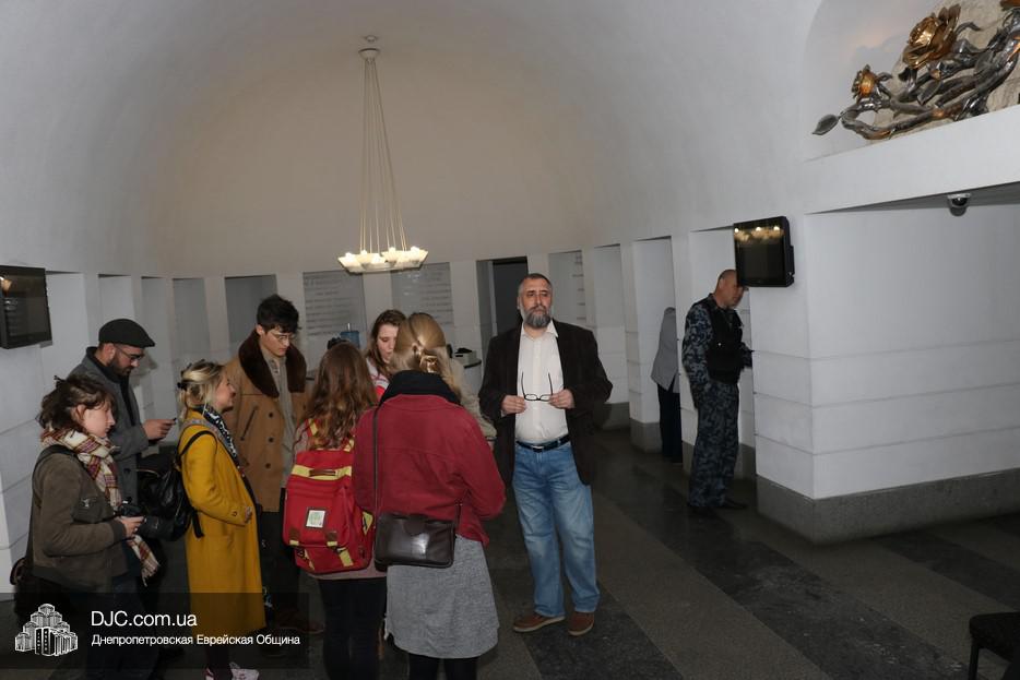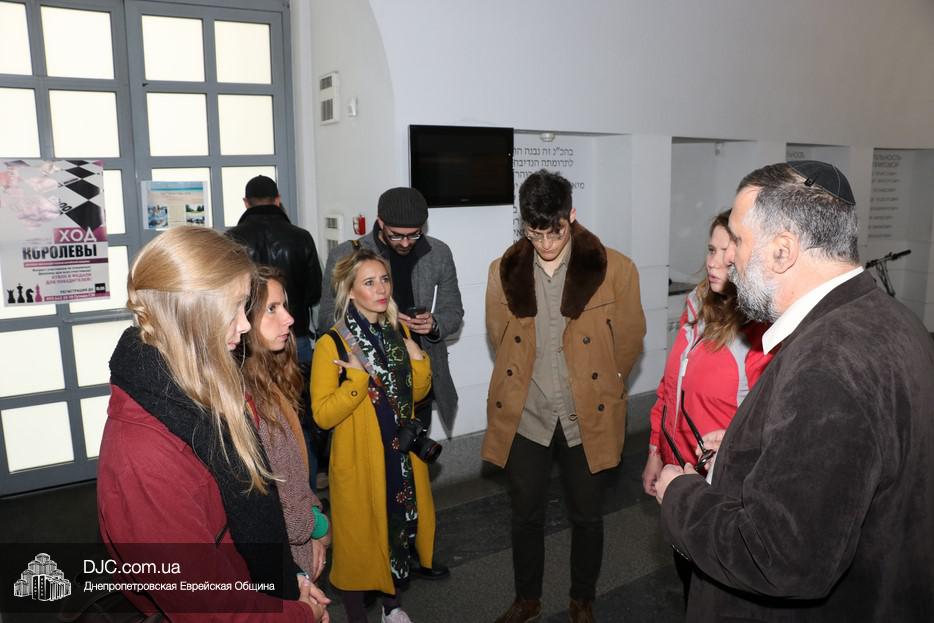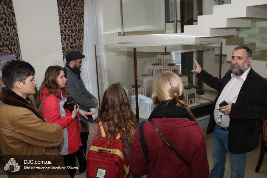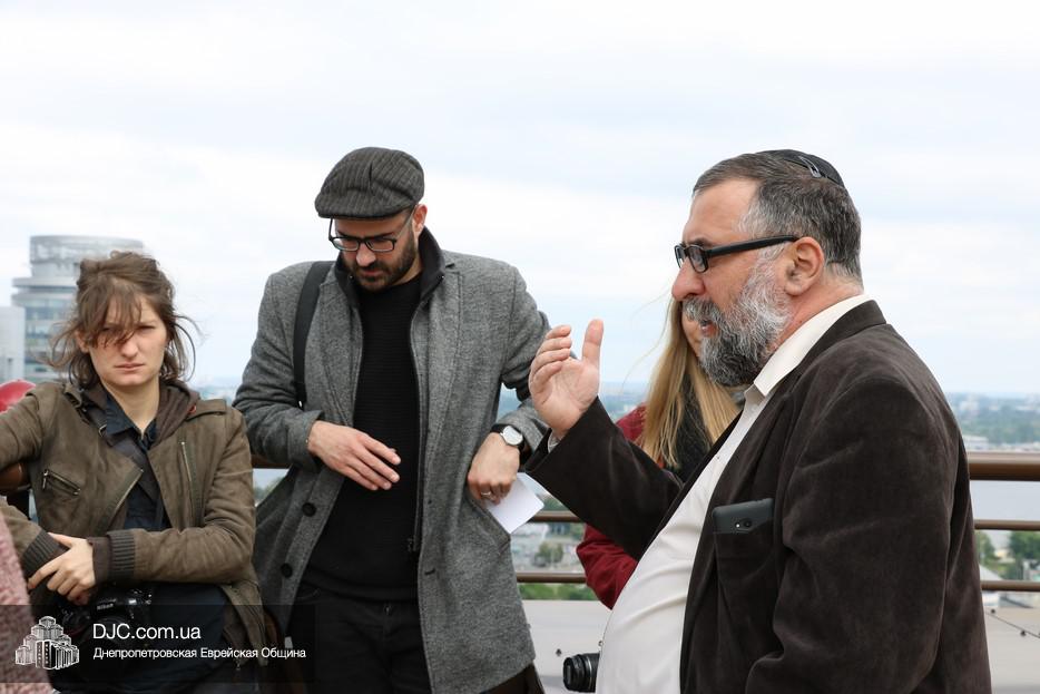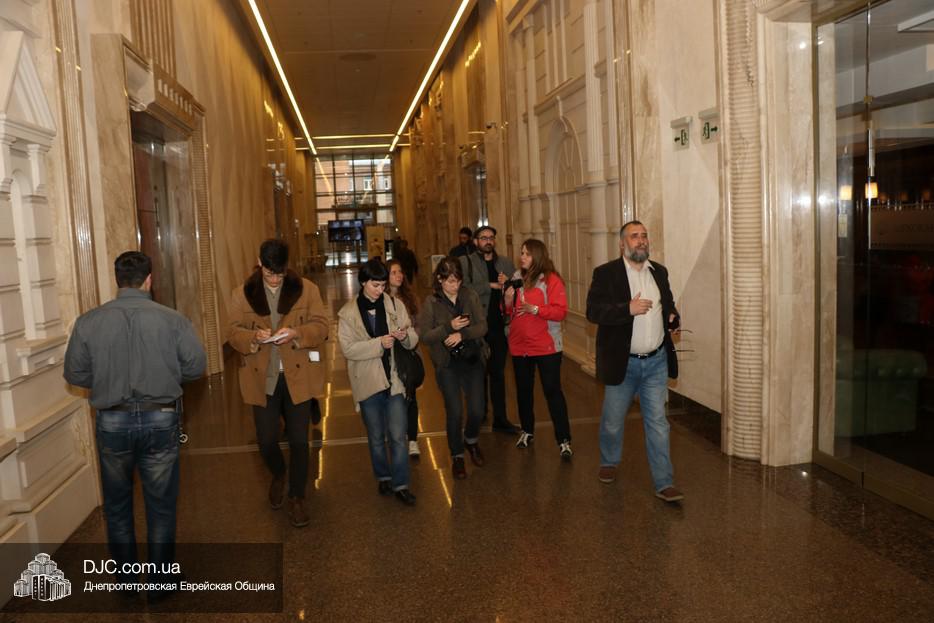 В программу пресс-тура вошли три города – Киев, Днепр и Одесса, а в Днепре ключевым стало знакомство с уникальной еврейской общиной города – синагогой «Золотая Роза», центром «Менора», музеем «Память еврейского народа и Холокост в Украине». Член правления общины Олег Ростовцев поведал о прошлом и настоящем общины и ответил на самые разнообразные вопросы о еврейской религии, особенностях молитвы, межрелигиозных отношениях, формировании единой украинской политической нации с сохранением различных идентичностей этноконфессиональных групп.
