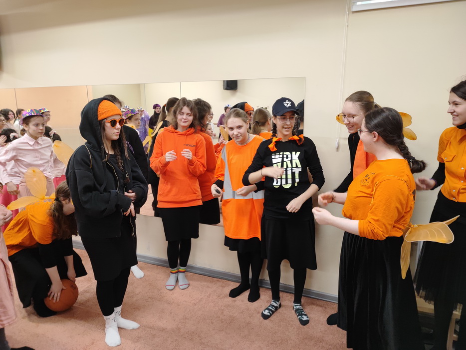 «Для того чтобы программа получилась красочной и веселой, девочки начали готовиться к ней накануне праздника, – рассказала нашему сайту Эдна Юдович, – во-первых, каждый класс получил свой цвет. Девочки должны были прийти в одежде полученного цвета.