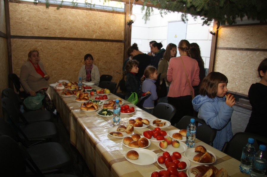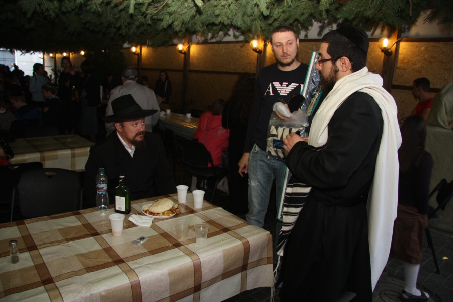 В течение всех дней праздника Суккот жизнь кипит в шалашах, построенных возле еврейских организаций нашего города – здесь проходят и благотворительные обеды для пожилых и малообеспеченных членов еврейской общины, и мероприятия для детей – учеников школы и воспитанников пансионов, сюда просто приходят евреи вместе с семьями, чтобы выполнить заповеди праздника.
