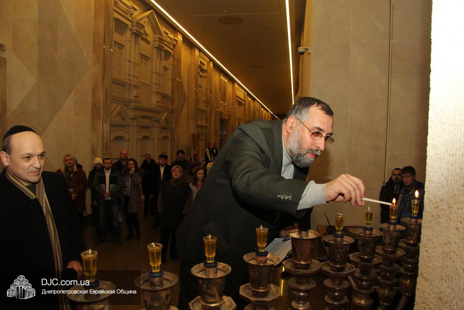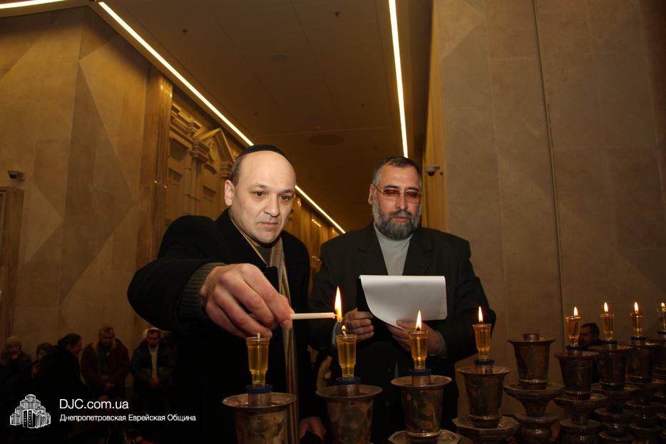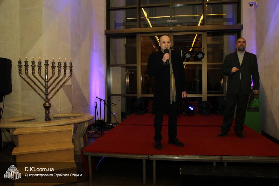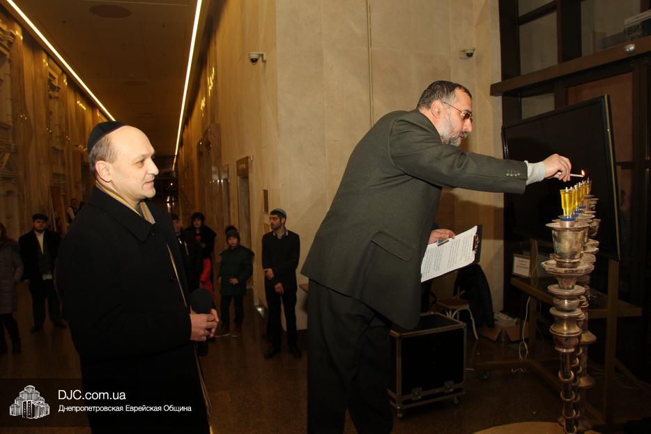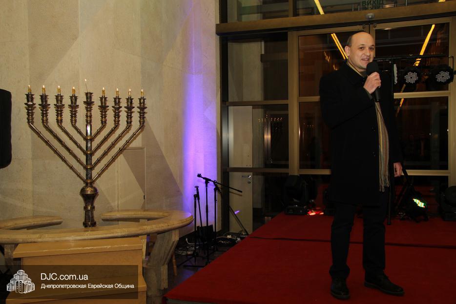После исхода Шабата наступил последний вечер праздника Ханука, когда зажигаются все восемь его светильников. Церемонию зажжения главной Ханукии в центре «Менора» провел советник городского головы Днепра, член правления еврейской общины Олег Ростовцев.