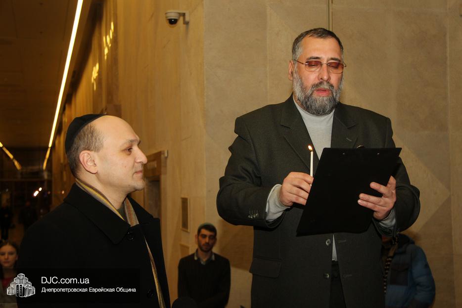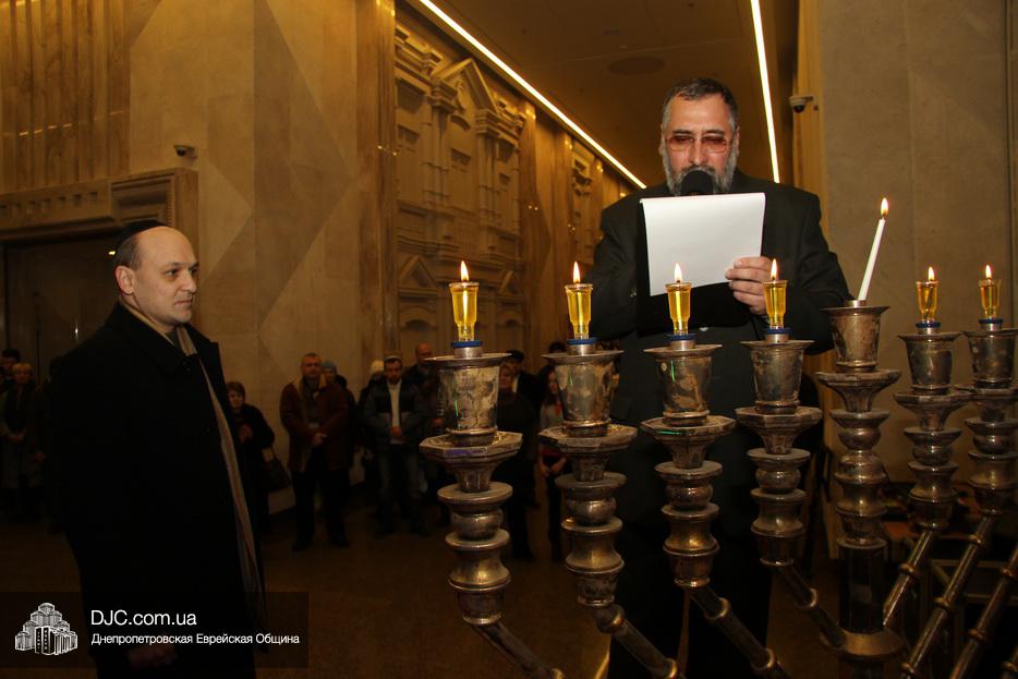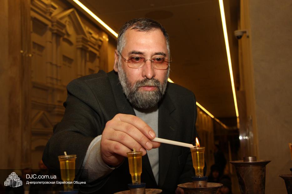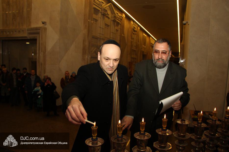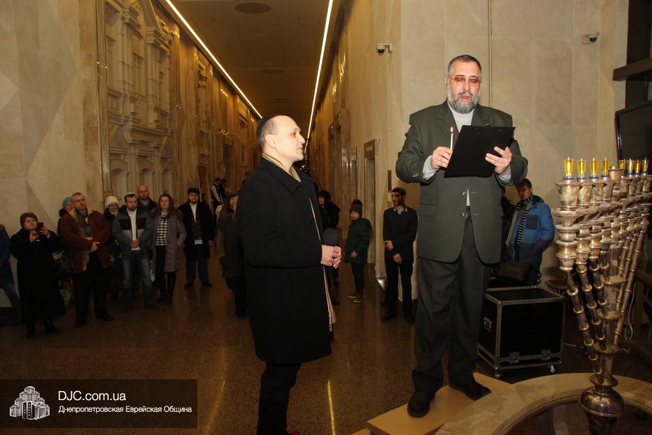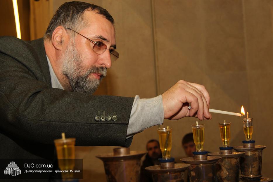 После исхода Шабата наступил последний вечер праздника Ханука, когда зажигаются все восемь его светильников. Церемонию зажжения главной Ханукии в центре «Менора» провел советник городского головы Днепра, член правления еврейской общины Олег Ростовцев.