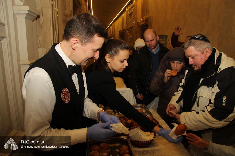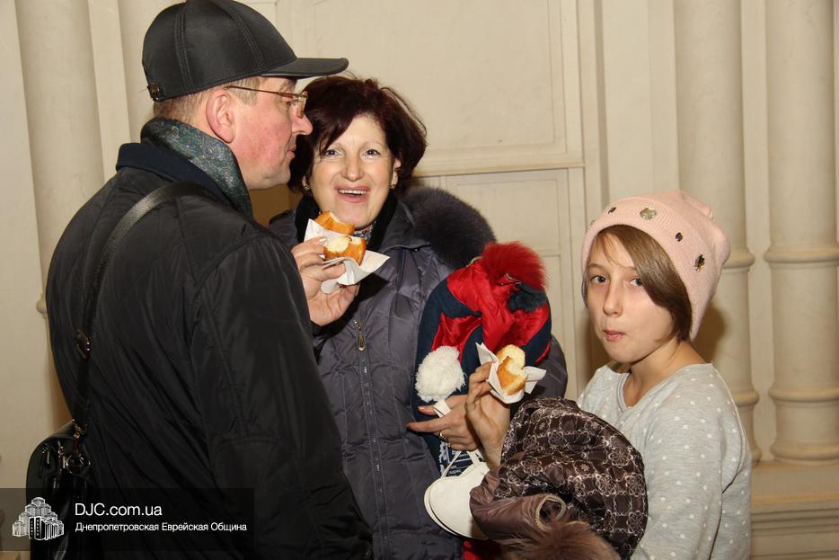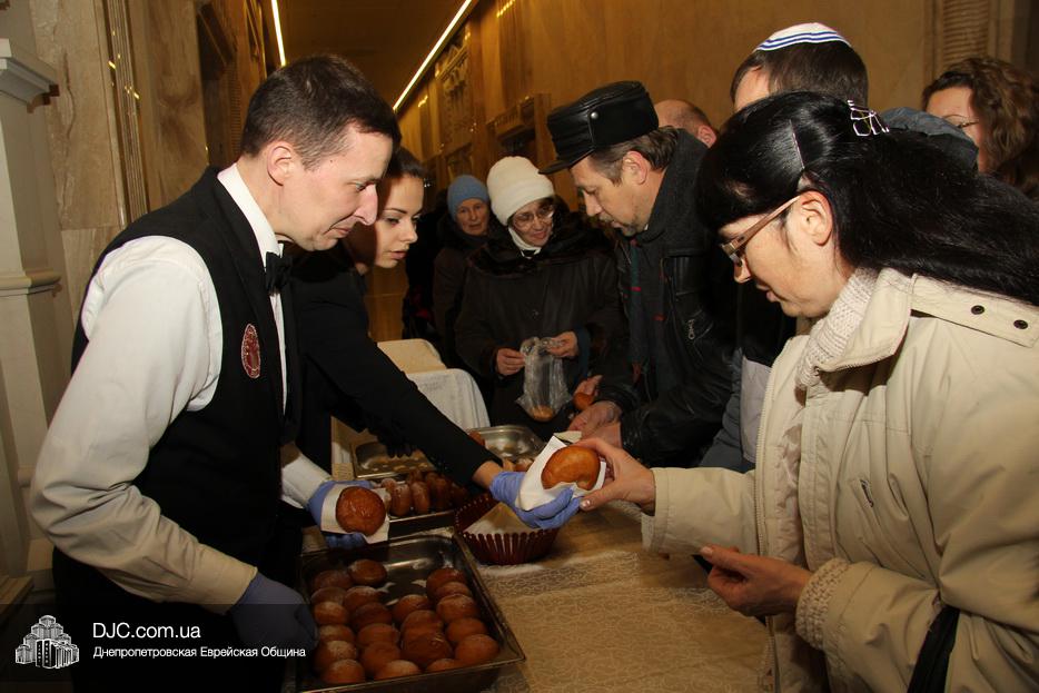 Затем центр «Менора» пригласил всех присутствующих на зажигании отведать вкуснейших пончиков, последних в эту Хануку и в этом календарном году, после чего все присутствующие были приглашены посмотреть на парад лимузинов уже подъезжающих к синагоге «Золотая Роза» и готовящихся начат свое путешествие по улицам и проспектам Днепра.