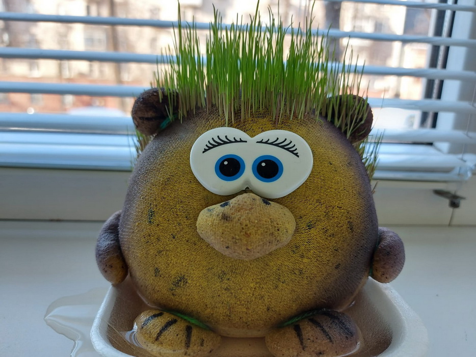 В каждой группе появился новый житель «Травянчик» – это такая экоигрушка. Если за ней ухаживать и ее поливать, то у нее на голове начинает расти травка или то растение, семена которого вы использовали при начале работы с игрушкой.