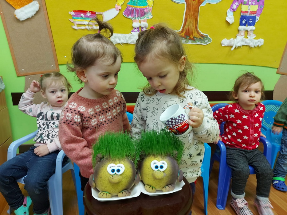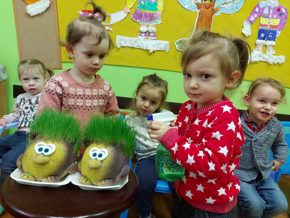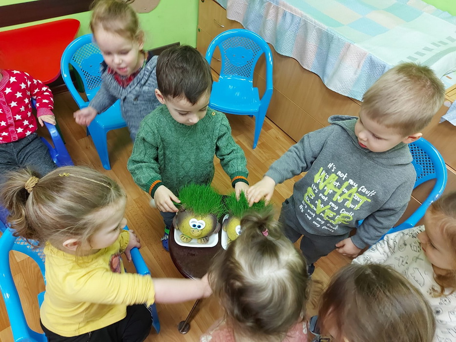 На протяжении нескольких недель мы наблюдали за тем, как прорастают зерна пшеницы. Наши дети увидели весь жизненный цикл зерен, с первого дня рождения растения, они очень внимательно и аккуратно поливали своих новых друзей и сами увидели как у «Травянчиков» на голове выросла травка – это было очень интересно и увлекательно, детям очень понравился этот процесс».