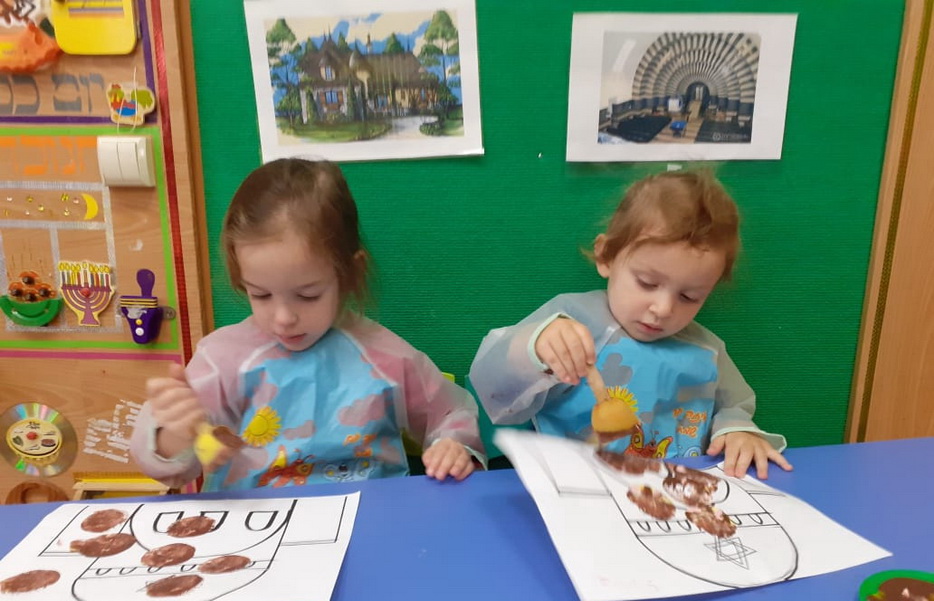 В ясельках «Илана», входящих в единый учебно-воспитательный комплекс с еврейской школой и «Бейт Циндлихт», на занятии по ручному труду рисовали «Бейт кнесет».