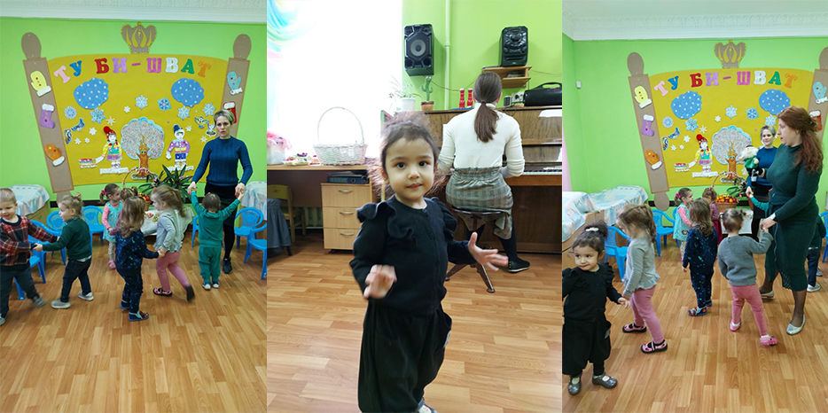 Самые маленькие члены Еврейской общины Днепра, посещающие ясельки «Илана», входящие в единый учебно-воспитательный комплекс с еврейской школой и «Бейт Циндлихт», весело и музыкально провели праздник Ту Би Шват.