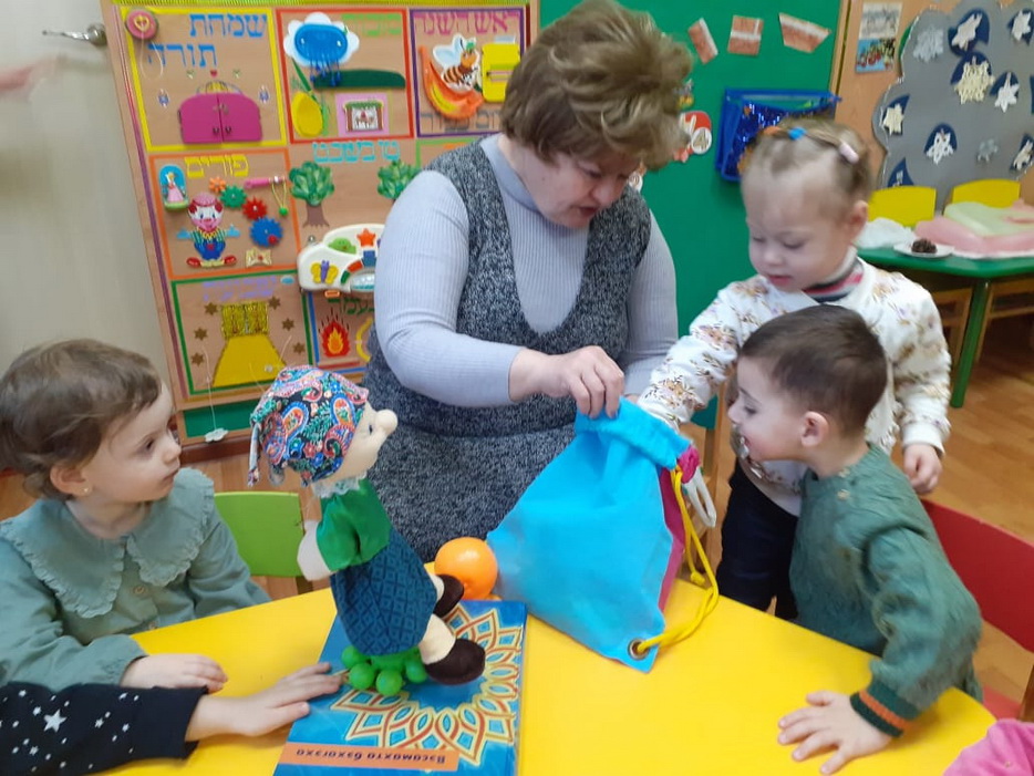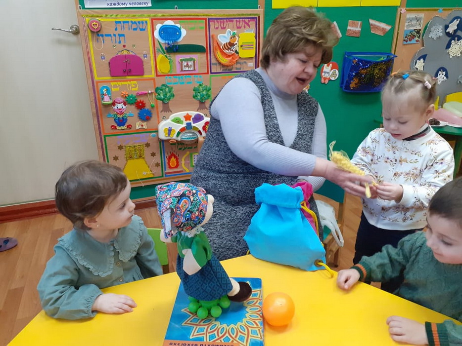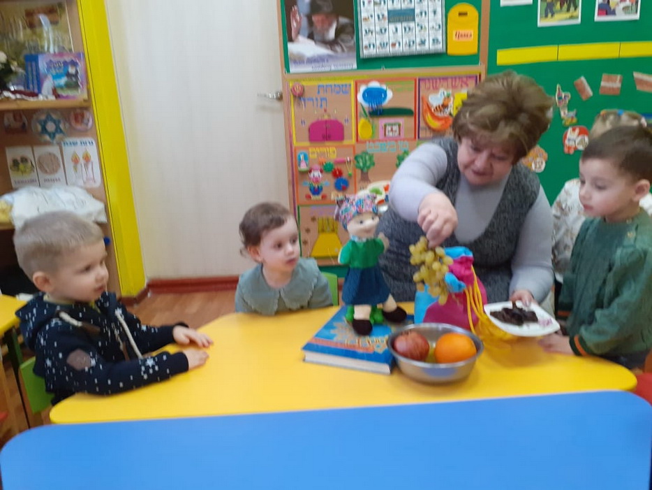 А в сам праздник у нас прошел музыкальный утренник, на котором дети танцевали, помогали садовнику собирать урожай, украшали розовыми цветами миндальное дерево, попутешествовали в Израиль, в общем, весело и познавательно провели время. Затем наступило самое вкусное приключение этого праздника, так как наши малыши угощались фруктами, как и положено, в этот день».