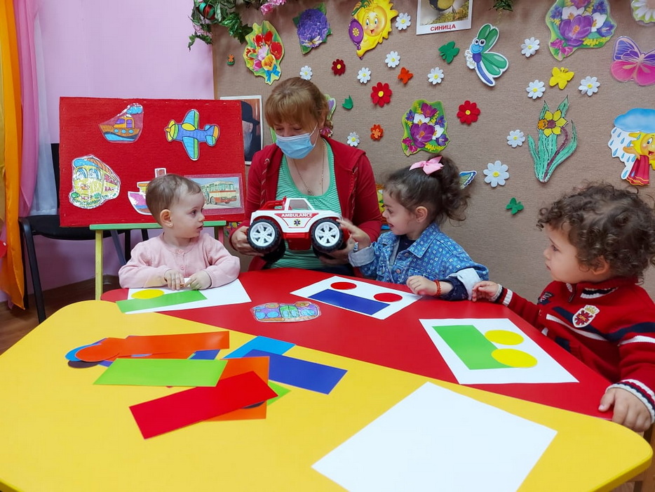 Одно из занятий было посвящено различным видам транспорта, который дети наблюдают вокруг себя. Воспитательница ясель Катерина Удовина рассказала нашему сайту подробности: «Тема занятия – «Машины разные нужны, машины разные важны» и на нем наши детки с интересом знакомились с различными видами транспортных средств. И, как всегда, это происходило в игре, ведь игра обладает мощными развивающими действиями. Наши малыши с радостью конструировали транспорт, используя метод прикладывания готовых форм».