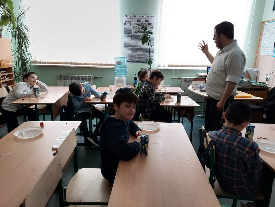 В днепровской иешиве-ктана, учебном заведении для мальчиков, являющимся одним из ведущих образовательных проектов еврейской общины Днепра, прошли фарбренгены в честь Песаха Шени.
