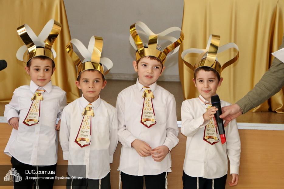 В днепровской иешиве-ктана, учебном заведении для мальчиков, являющемся одним из ведущих образовательных проектов еврейской общины Днепра, прошел праздник для младших воспитанников, посвященный Пятикнижию Моисея, которое на иврите называется Хумаш.