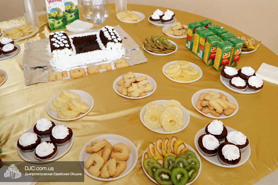 Кульминацией праздника стал танец родителей с детьми на плечах и праздничное угощение по завершении официальной части, где главным из его элементов был торт в виде Свитка Торы, а из специально приготовленного печенья выложена надпись на иврите – «Берешит».