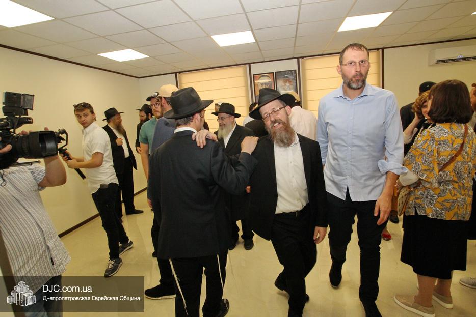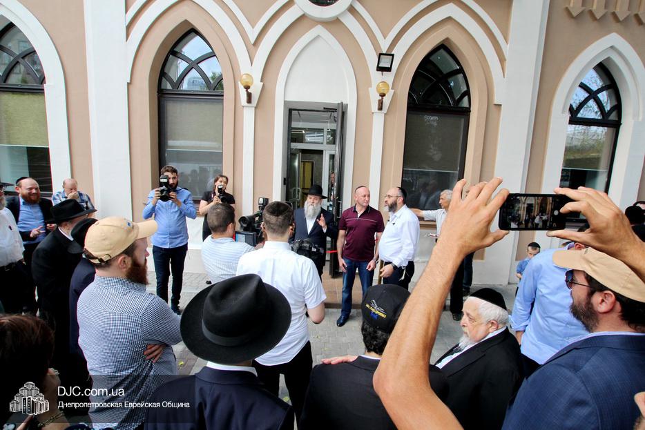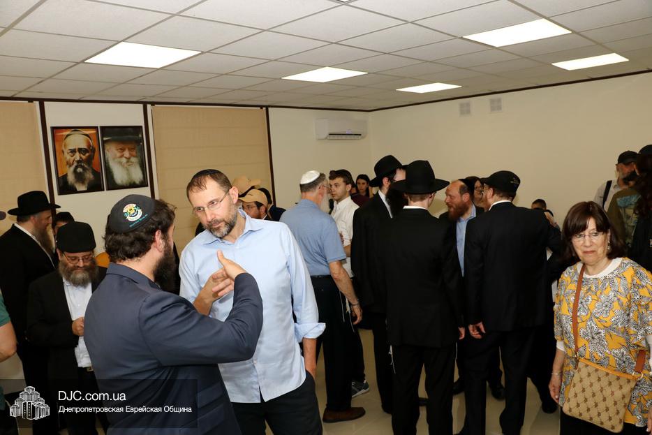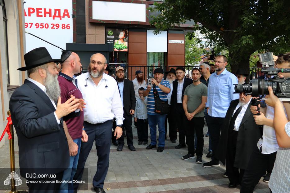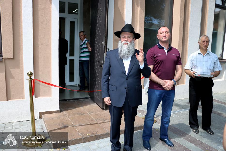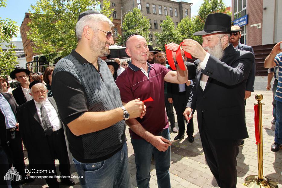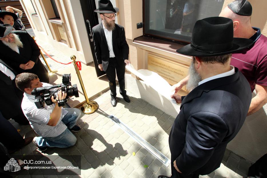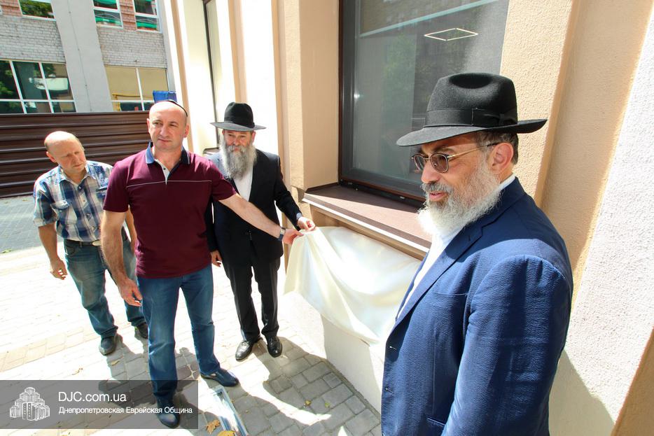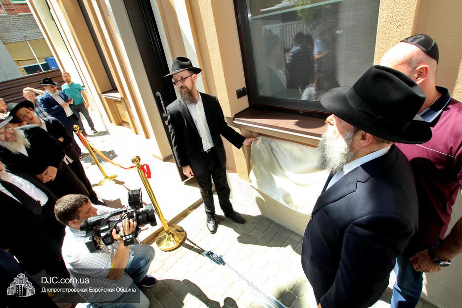 Открыть памятные доски на здании были приглашены: меценат реконструкции Александр Турчин, Главный раввин Днепра и региона Шмуэль Каминецкий, основатель «JEM» раввин Гилель Довид Крински (rabbi Hillel Dоvid Krinsky) и нынешний руководитель «JEM» раввин Эльканан Шмоткин (rabbi Elkanah Shmotkin), а перерезать красную ленточку перед зданием, вместе с раввином Каминецким и Александром Турчиным, был приглашен известный меценат и благотворитель, член Попечительского совета еврейской общины Днепра Геннадий Сорока.