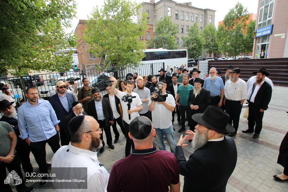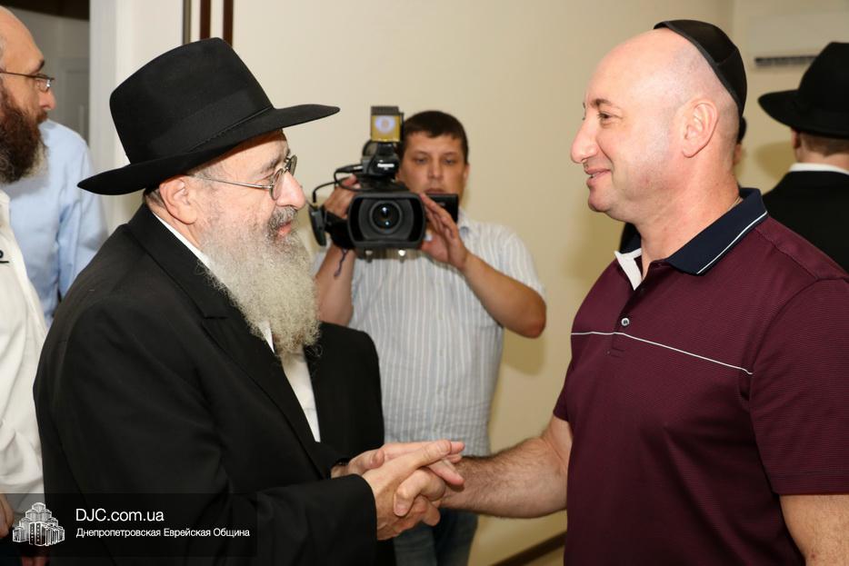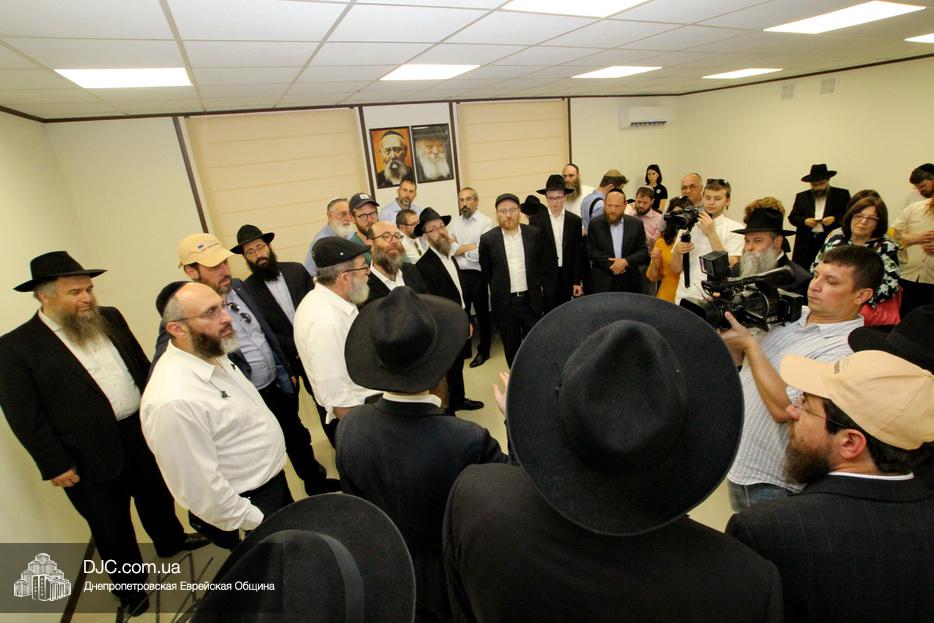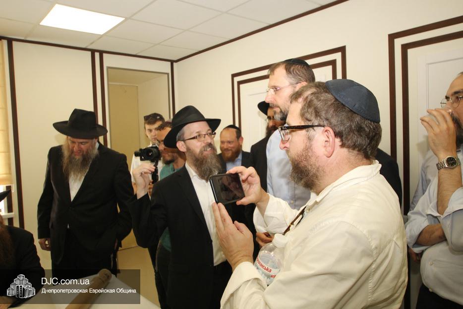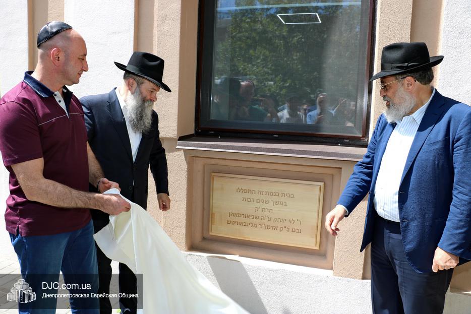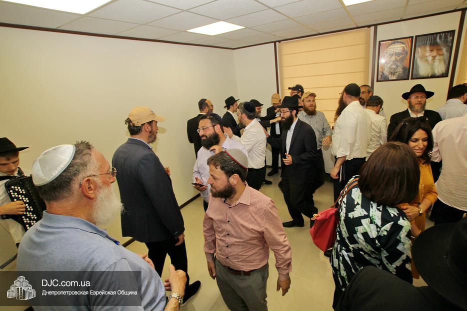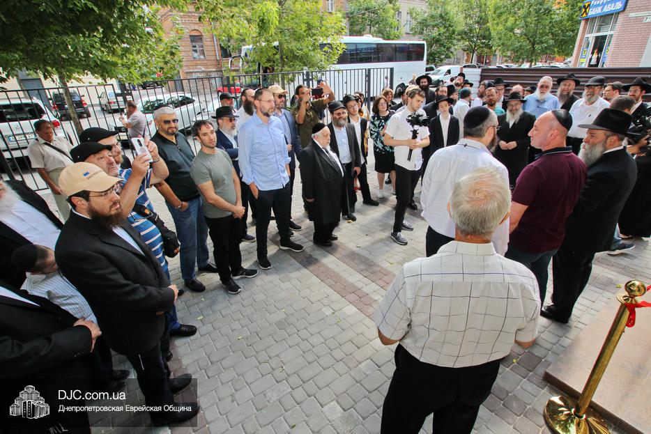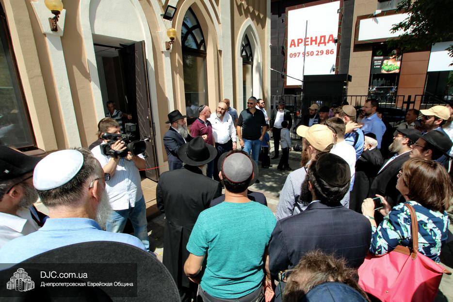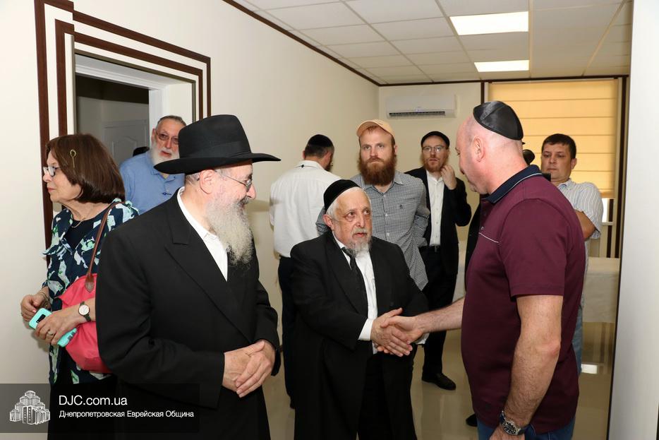 Открыть памятные доски на здании были приглашены: меценат реконструкции Александр Турчин, Главный раввин Днепра и региона Шмуэль Каминецкий, основатель «JEM» раввин Гилель Довид Крински (rabbi Hillel Dоvid Krinsky) и нынешний руководитель «JEM» раввин Эльканан Шмоткин (rabbi Elkanah Shmotkin), а перерезать красную ленточку перед зданием, вместе с раввином Каминецким и Александром Турчиным, был приглашен известный меценат и благотворитель, член Попечительского совета еврейской общины Днепра Геннадий Сорока.
