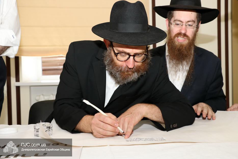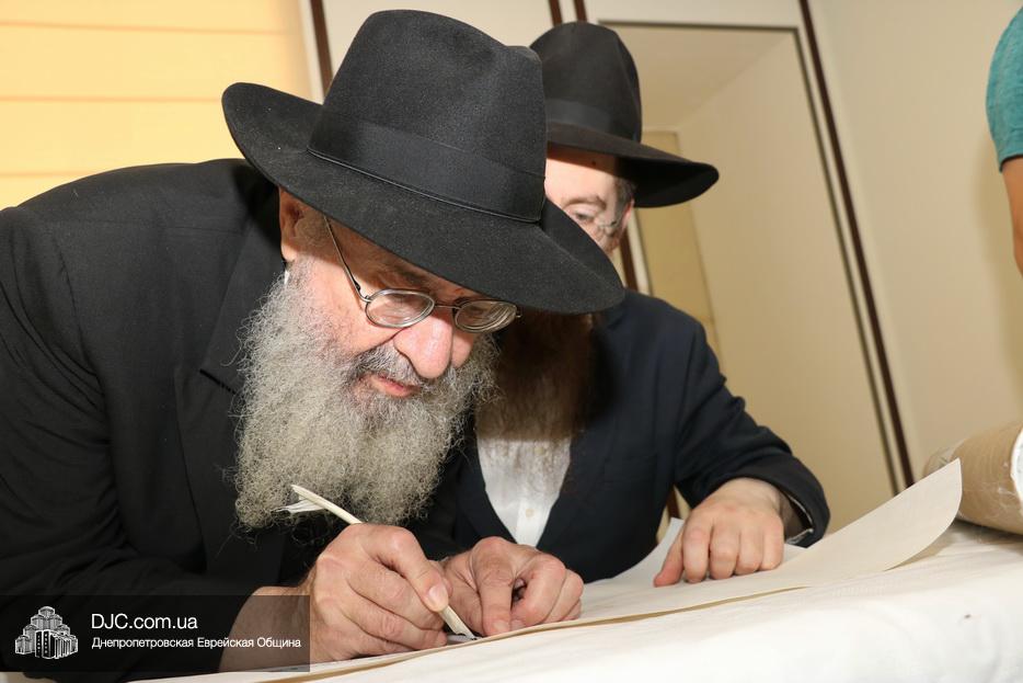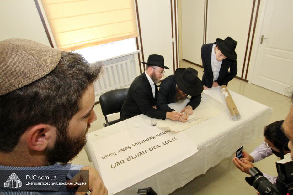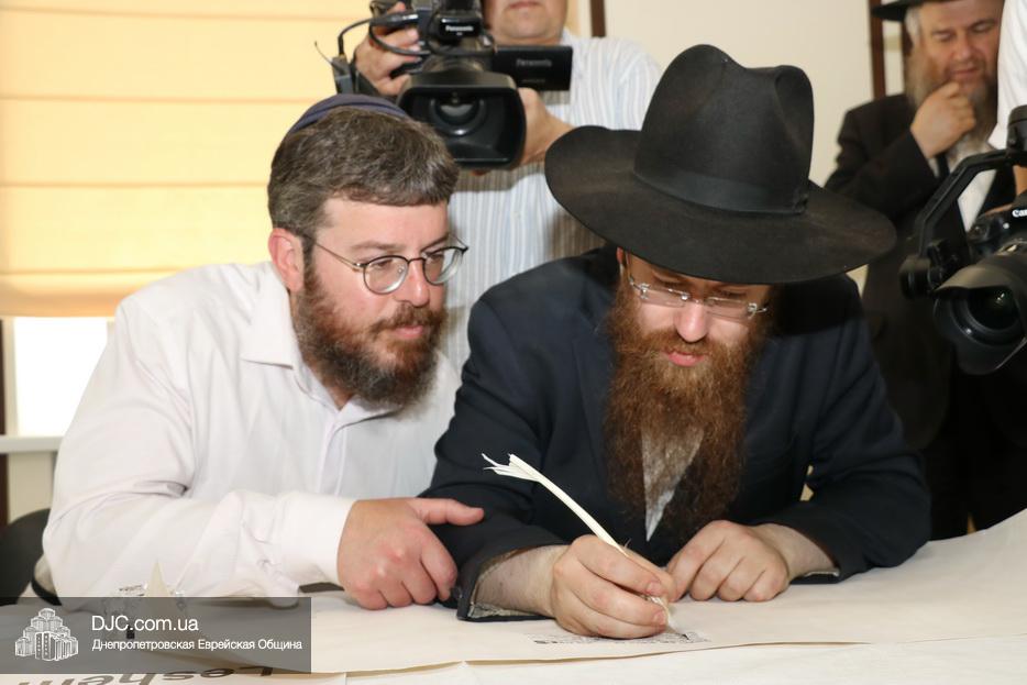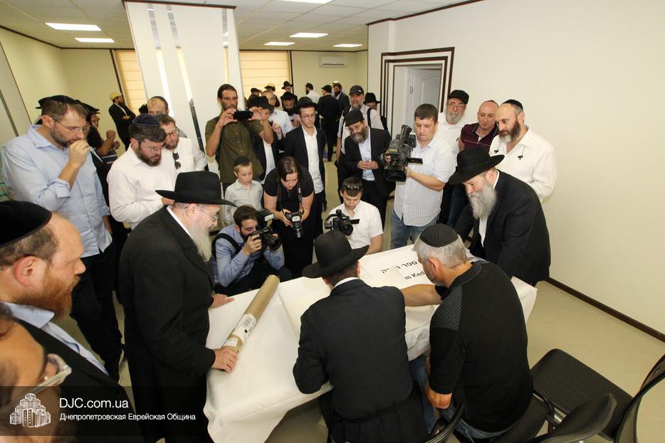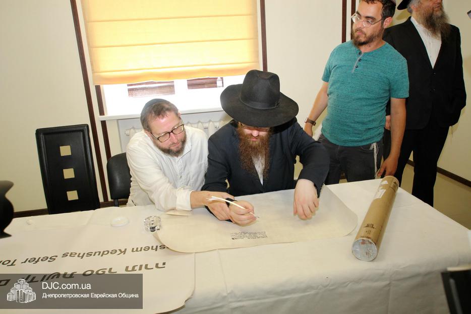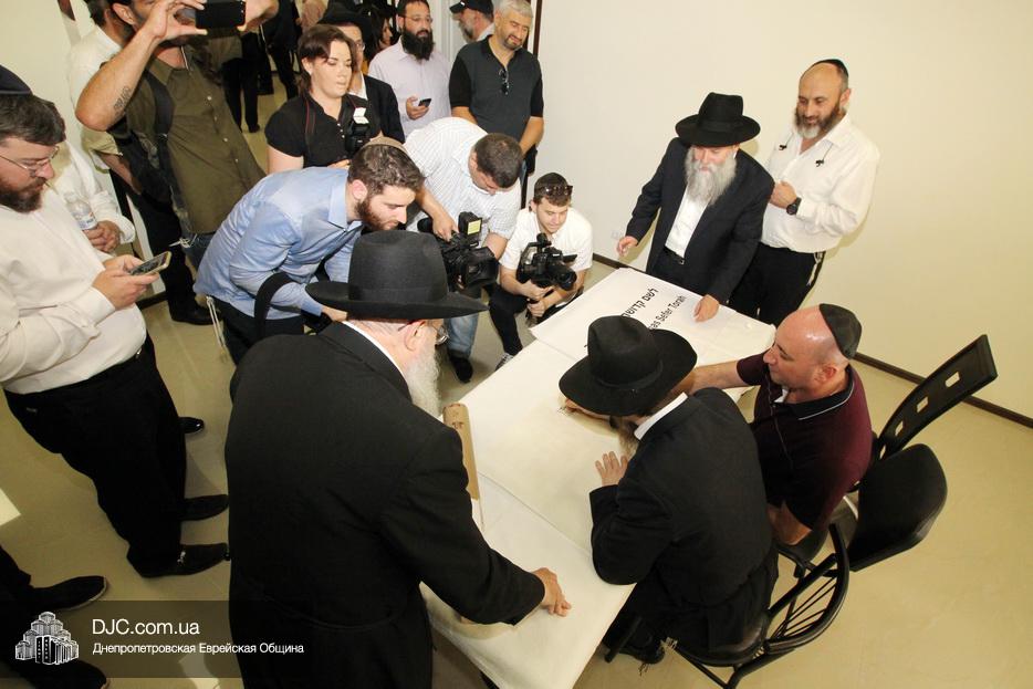 После осмотра реконструированных помещений столовой состоялась церемония написания Свитка Торы, который был начат участниками проекта «Early years experience» в Николаеве и будет продолжен в других местах, связанных с жизнью и святой работой Любавического Ребе. Честь написать буквы в Свитке Торы была предоставлена почетным гостям церемонии, меценатам и уважаемым раввинам.
