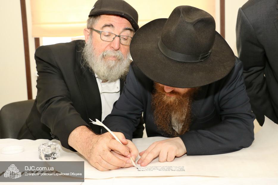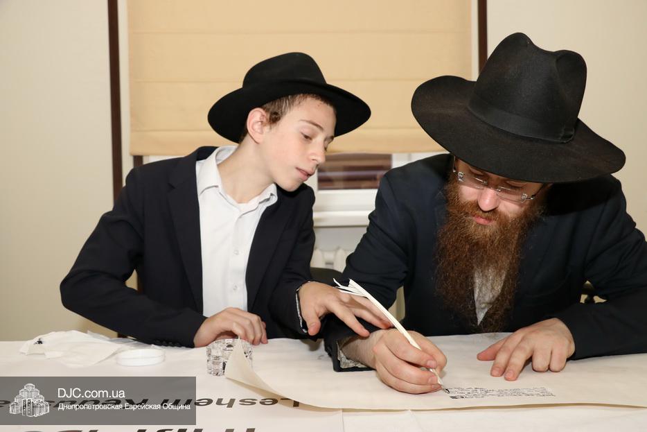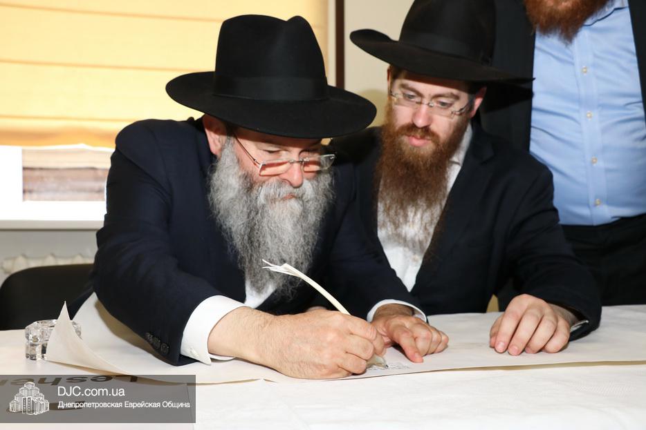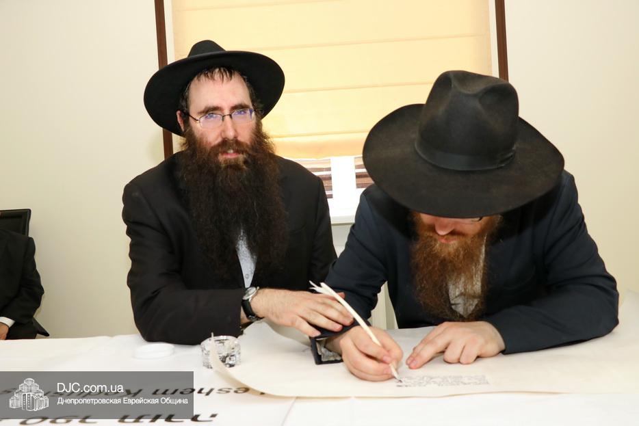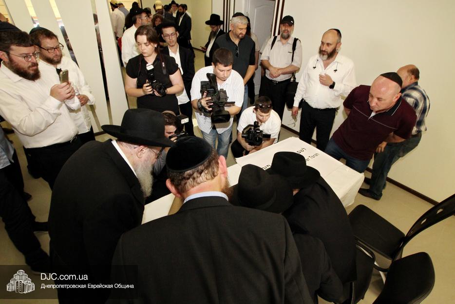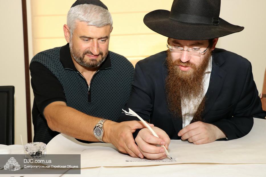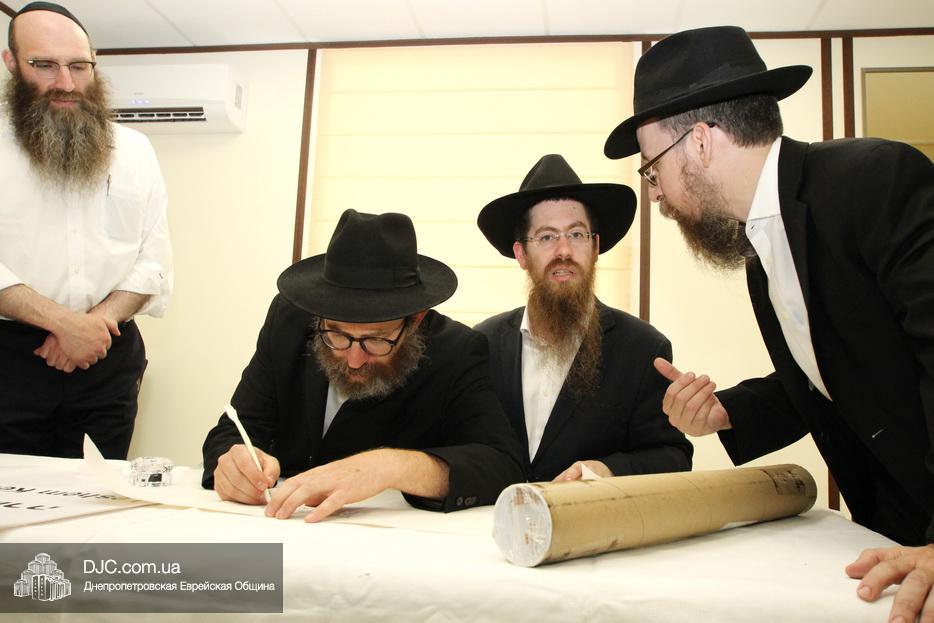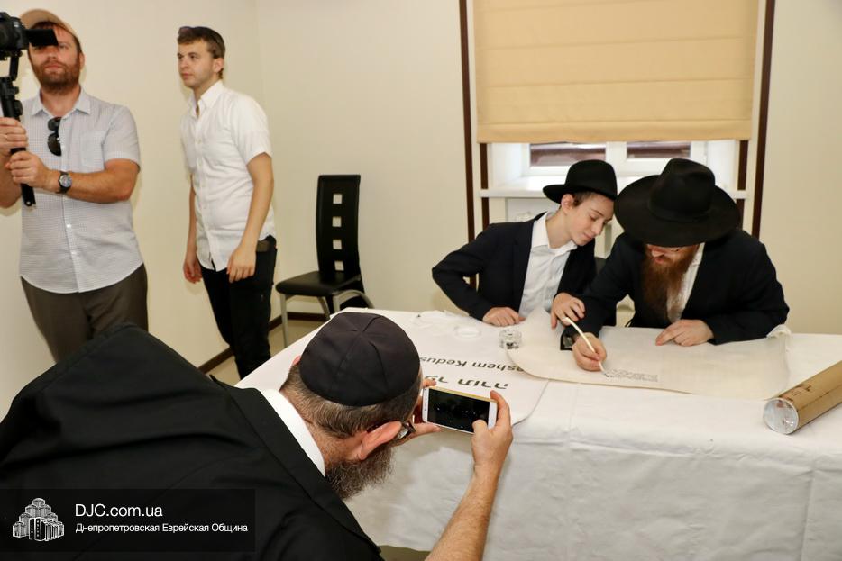 После осмотра реконструированных помещений столовой состоялась церемония написания Свитка Торы, который был начат участниками проекта «Early years experience» в Николаеве и будет продолжен в других местах, связанных с жизнью и святой работой Любавического Ребе. Честь написать буквы в Свитке Торы была предоставлена почетным гостям церемонии, меценатам и уважаемым раввинам.