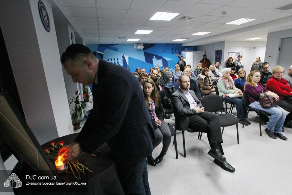 Затем Второй секретарь посольства государства Израиль в Украине, директор Израильского Культурного Центра Вячеслав Смоткин зажег свечу памяти, а все присутствовавшие почтили память Ицхака Рабина минутой молчания. Завершилась церемония исполнением государственного гимна Израиля.