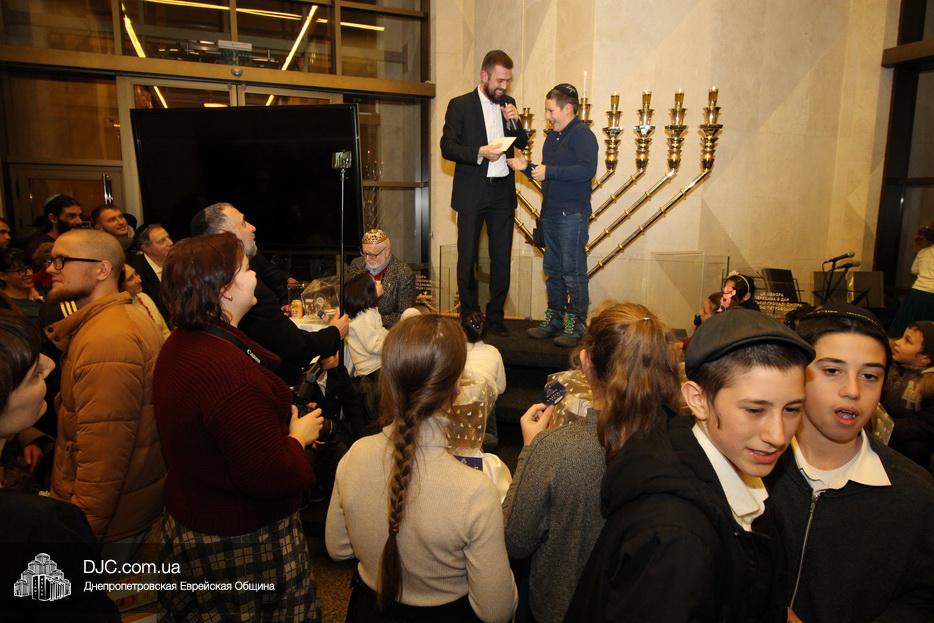 В этом году еврейская община Днепра проводит двойную лотерею – каждый день разыгрываются денежные призы и призы-сюрпризы, а кроме того, каждый пришедший на зажжение ханукии центра «Менора», каждый день может получить специальный «красный билет», который будет участвовать в супер-розыгрыше, который состоится в восьмой вечер Хануки, где главным призом будет ультрамодный «iPhone 11», чем больше дней человек участвует в зажжениях ханукий, тем больше шансов у него стать обладателем главного приза.
