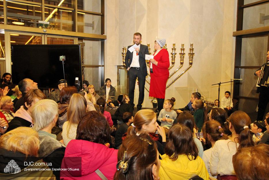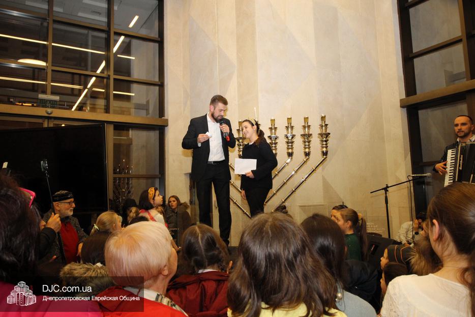 После торжественной церемонии зажжения пятой свечи Хануки 5780 года в Галерее центра «Менора», праздник продолжился большой концертной программой, угощениями и розыгрышем лотереи «Хануке гелт».