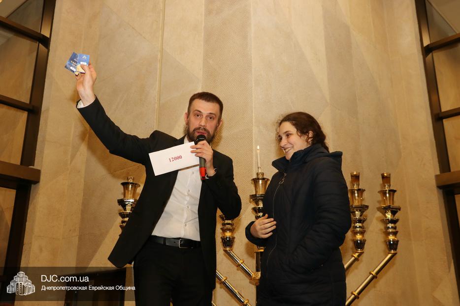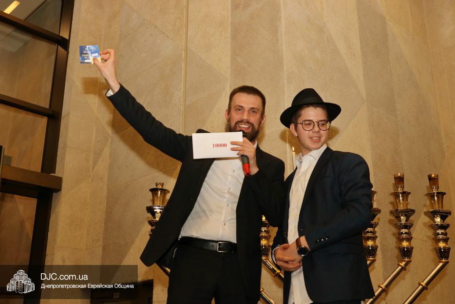 В этом году еврейская община Днепра проводит двойную лотерею – каждый день разыгрываются денежные призы и призы-сюрпризы, а кроме того, каждый пришедший на зажжение ханукии центра «Менора», каждый день может получить специальный «красный билет», который будет участвовать в супер-розыгрыше, который состоится в восьмой вечер Хануки, где главным призом будет ультрамодный «iPhone 11», чем больше дней человек участвует в зажжениях ханукий, тем больше шансов у него стать обладателем главного приза.