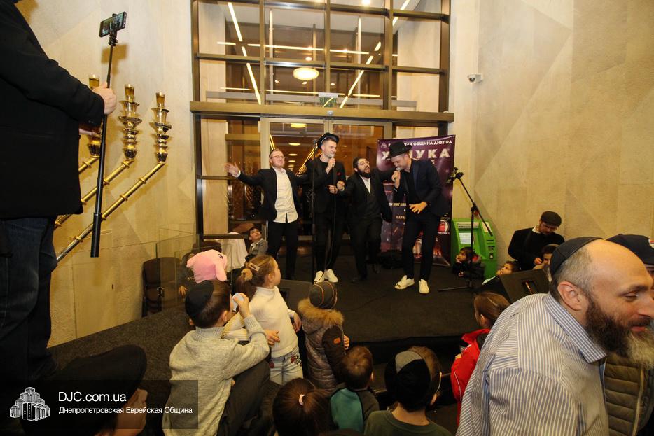 Традиционно, ханукальная развлекательная программа включает в себя и концерт популярных исполнителей или групп. В вечер седьмой свечи выступал знаменитый дуэт братьев Таранцовых, победителей песенного шоу «Голос страны 9», с большой программой зажигательных еврейских песен. Выступление братьев Таранцовых было принято публикой с восторгом и многие участвовали в искрометных хасидских танцах у главной ханукии.