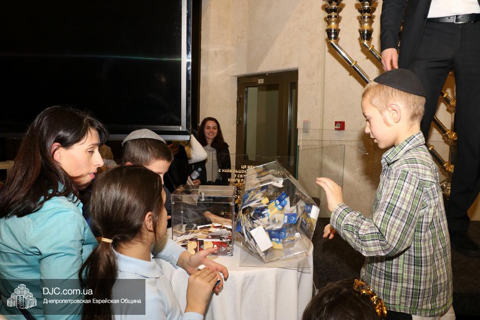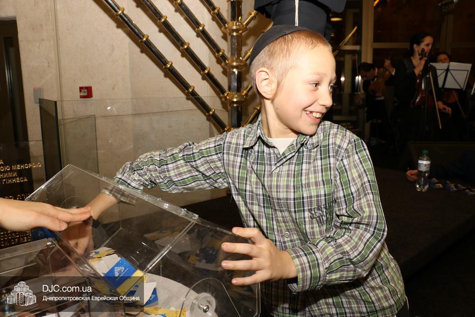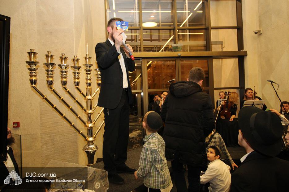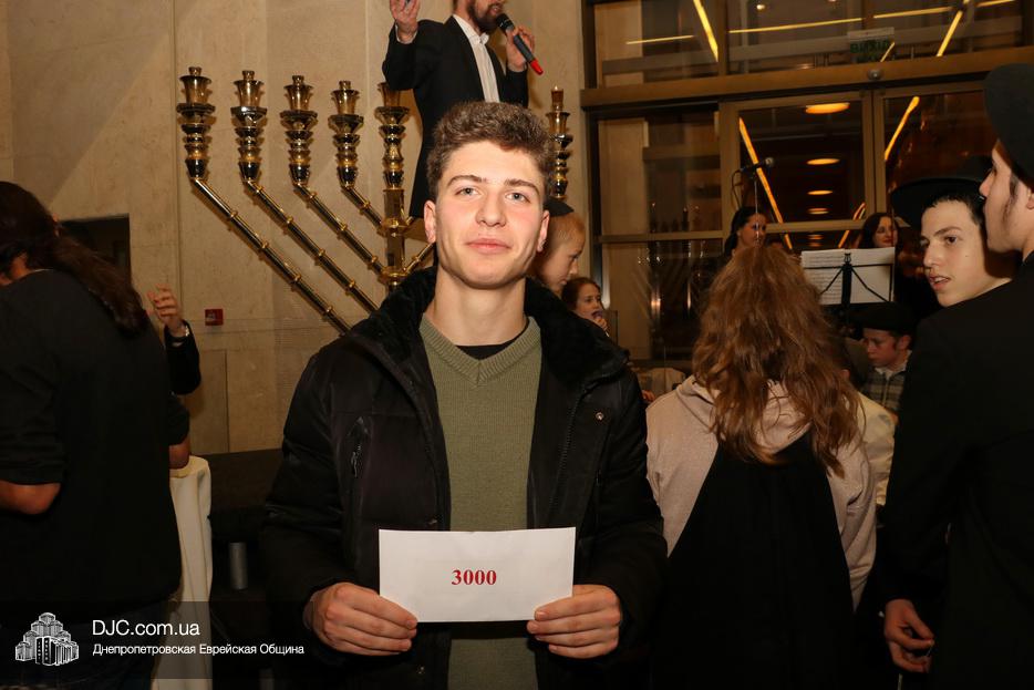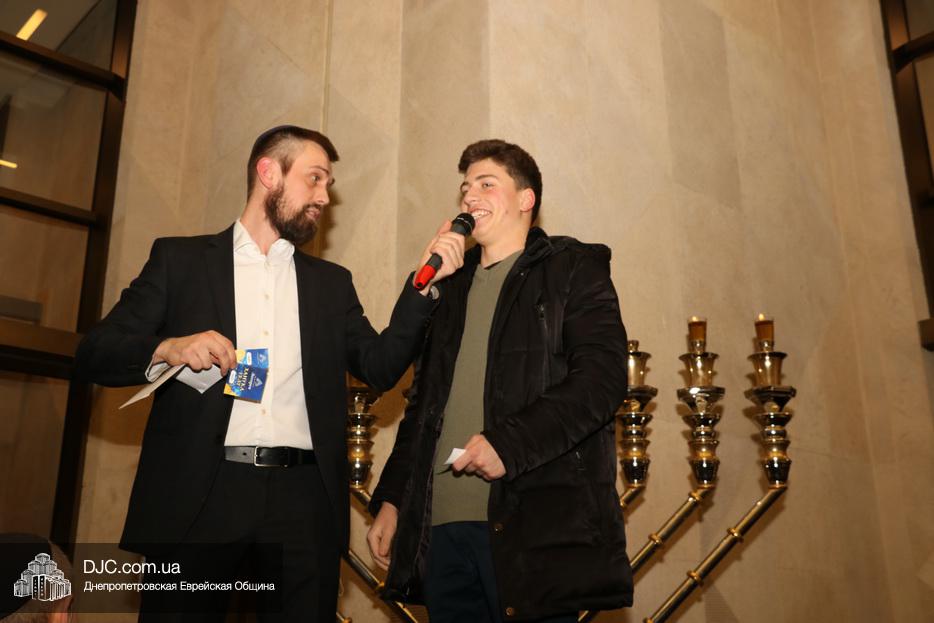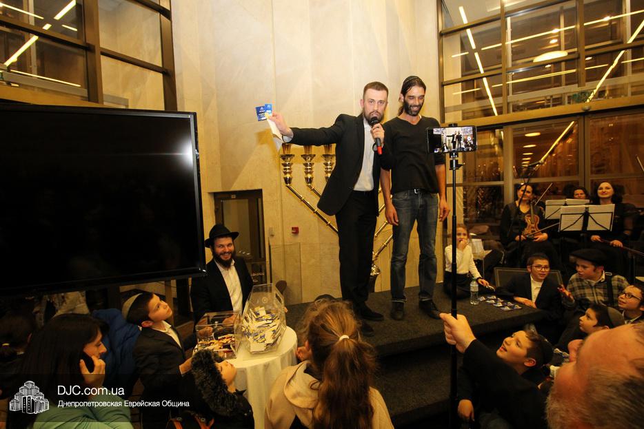В этом году еврейская община Днепра проводит двойную лотерею – каждый день разыгрываются денежные призы и призы-сюрпризы, а кроме того, каждый пришедший на зажжение ханукии центра «Менора», каждый день может получить специальный «красный билет», который будет участвовать в супер-розыгрыше, который состоится в восьмой вечер Хануки, где главным призом будет ультрамодный «iPhone 11», чем больше дней человек участвует в зажжениях ханукий, тем больше шансов у него стать обладателем главного приза.
