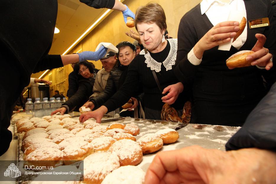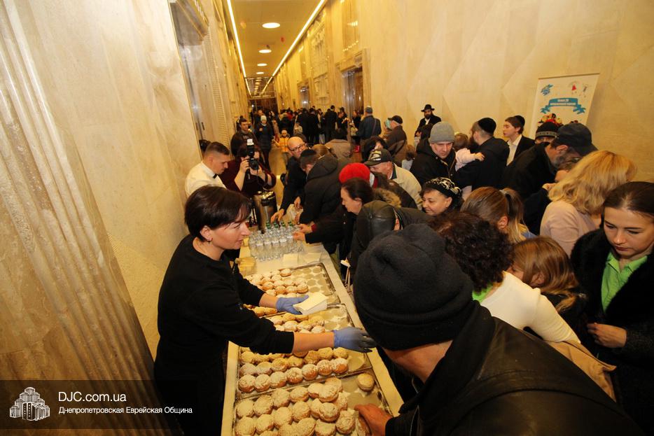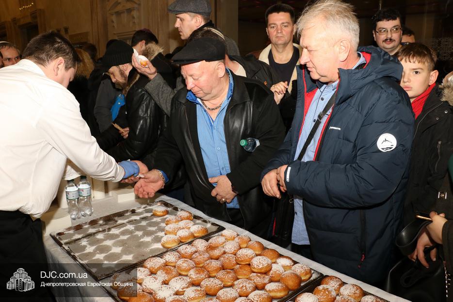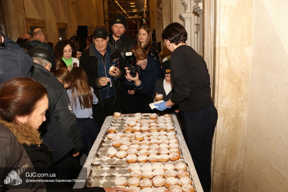 Завершением второго дня праздника стало традиционное угощение ханукальными пончиками и горячими напитками от центра «Менора», которые, как всегда, пользовались большой популярностью.