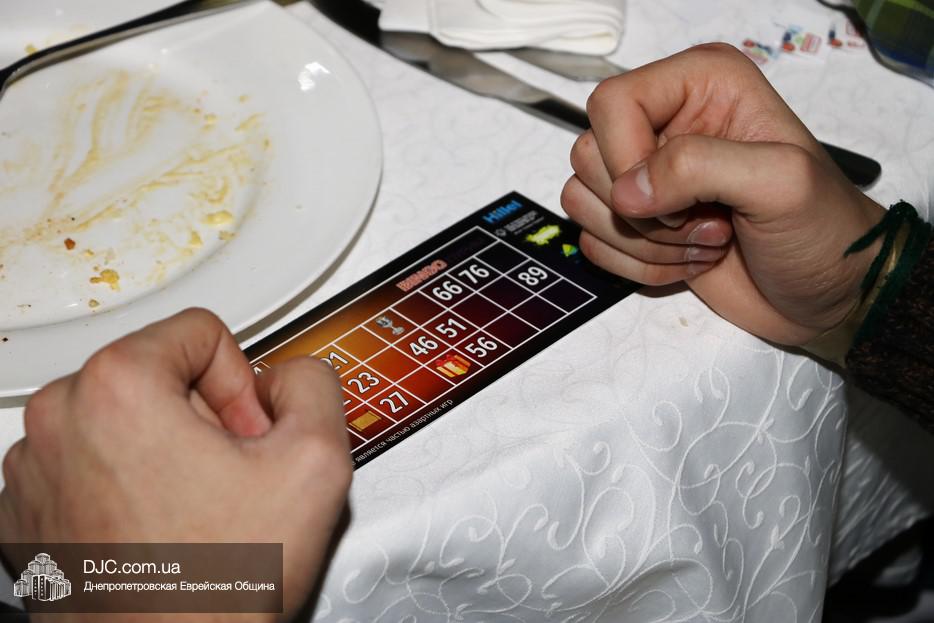 Затем ведущий объяснил правила пуримских дополнений в обычные правила игры «Bingo» – на некоторых бочонках номера были заменены на изображения различных символов самого праздника, еврейской культуры и государства Израиль. Призы, от чашки до внешней аккумуляторной батареи для мобильных устройств, были украшены символами организаторов и напоминаниями о празднике Пурим.
