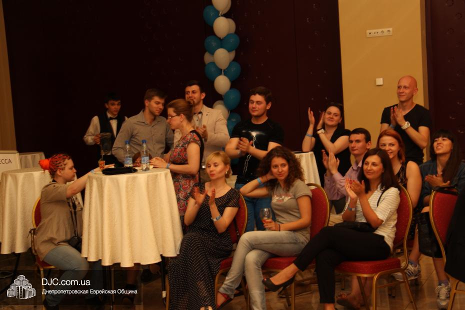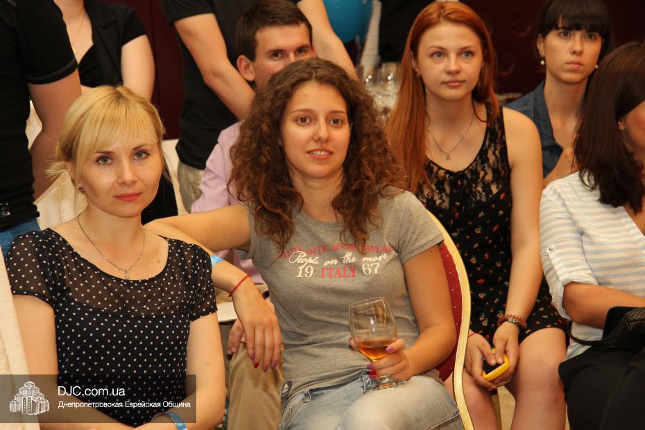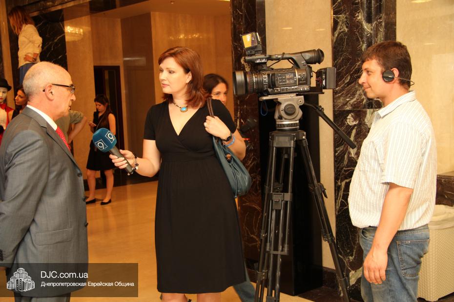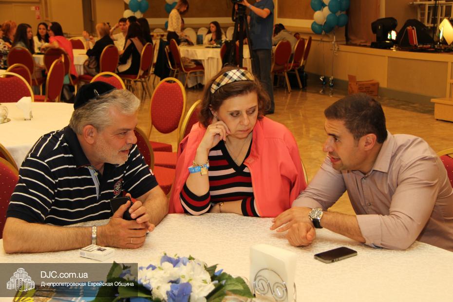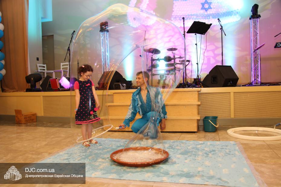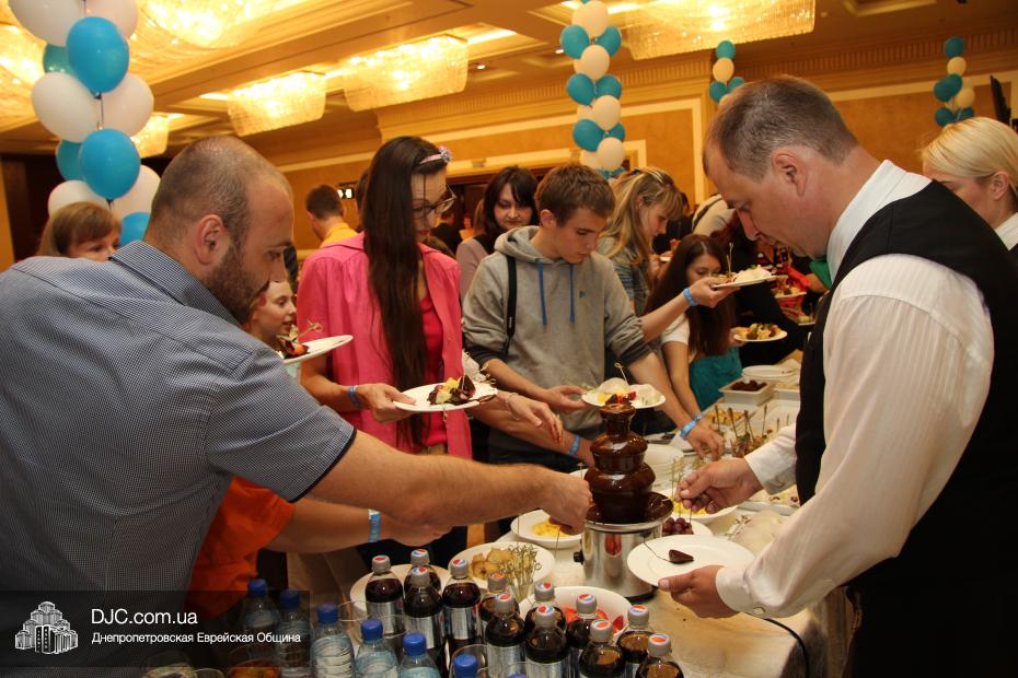 Современный и немного постмодернистский характер праздника задавала выставка фотографий о современном Израиле, мимы, шаржист и даже великан. Пока журналисты брали интервью, все могли начать с фуршета, и уже с закусками удобно расположиться за столами. Ведущий мероприятия Сергей Сачковский отметил, что праздновать День рождения Израиля, кроме днепропетровцев, приехали представители Запорожья, Киева и Донецка.