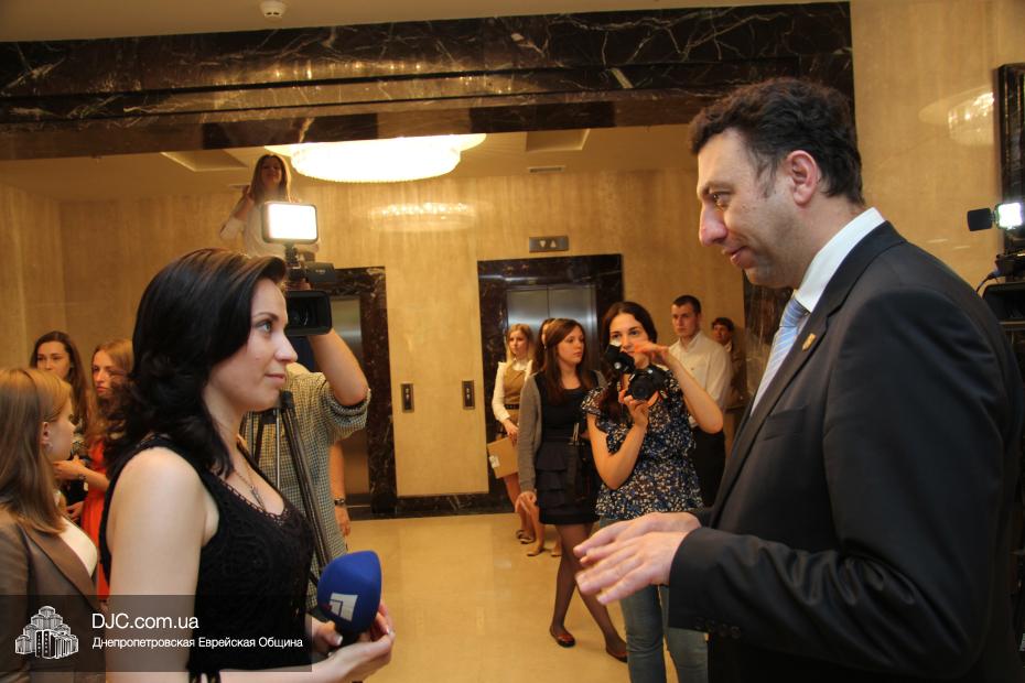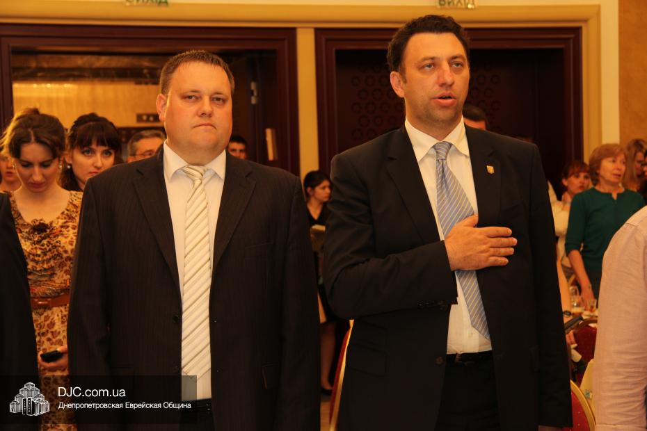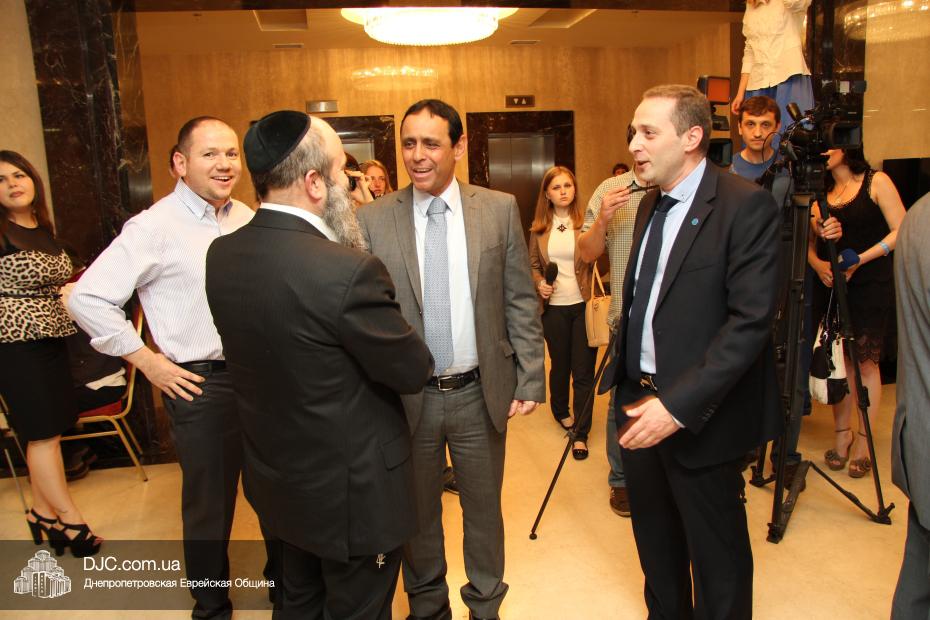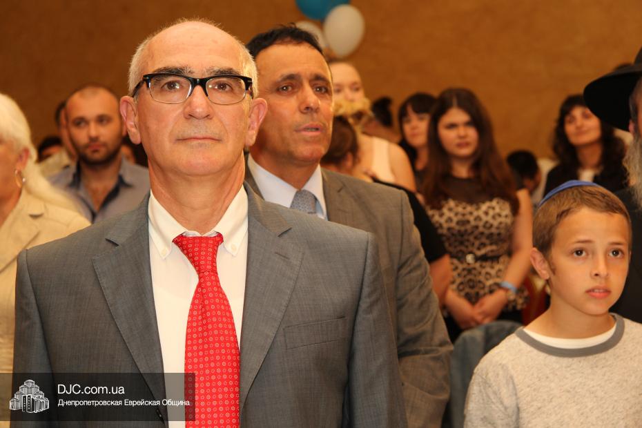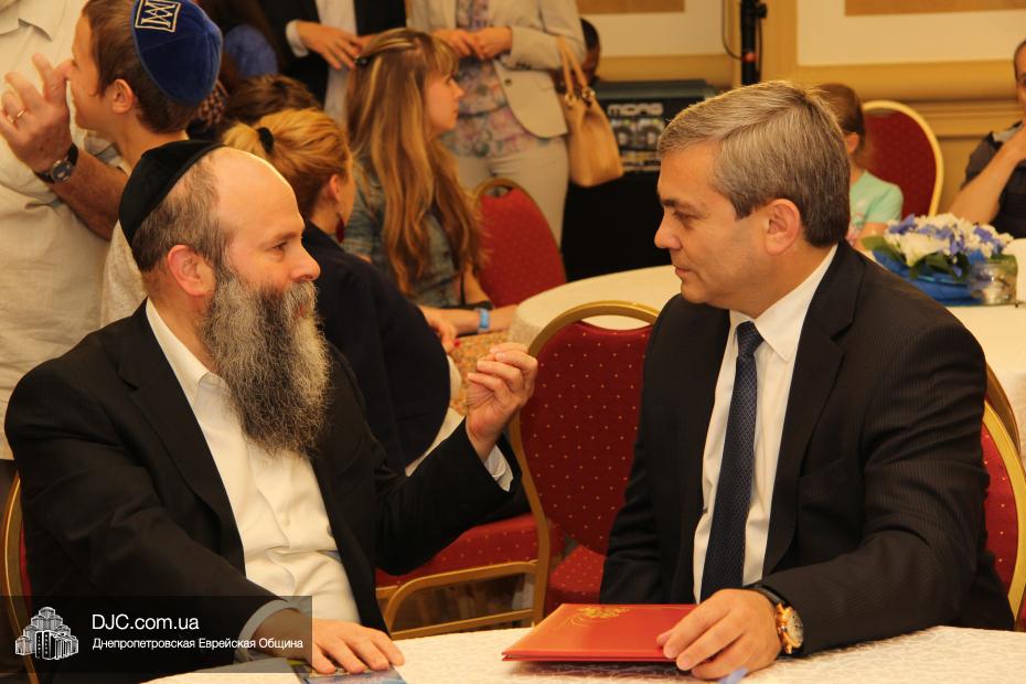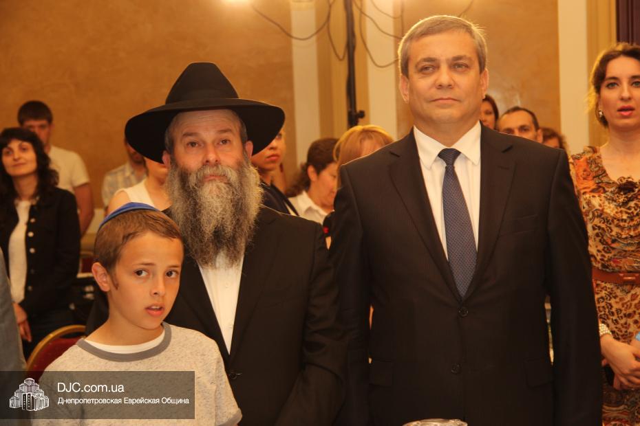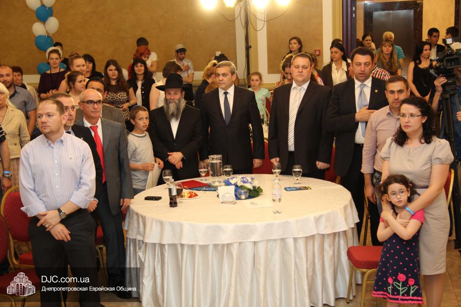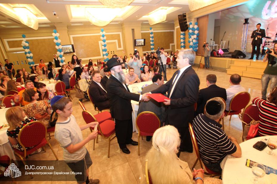 Советник главы Днепропетровской областной администрации Борис Трейгерман огласил официальное поздравление с Днем независимости Израиля, которое было направлено губернатором Днепропетровской области Игорем Коломойским, и вручил его текст раввину Каминецкому.
