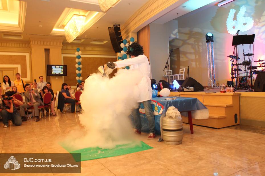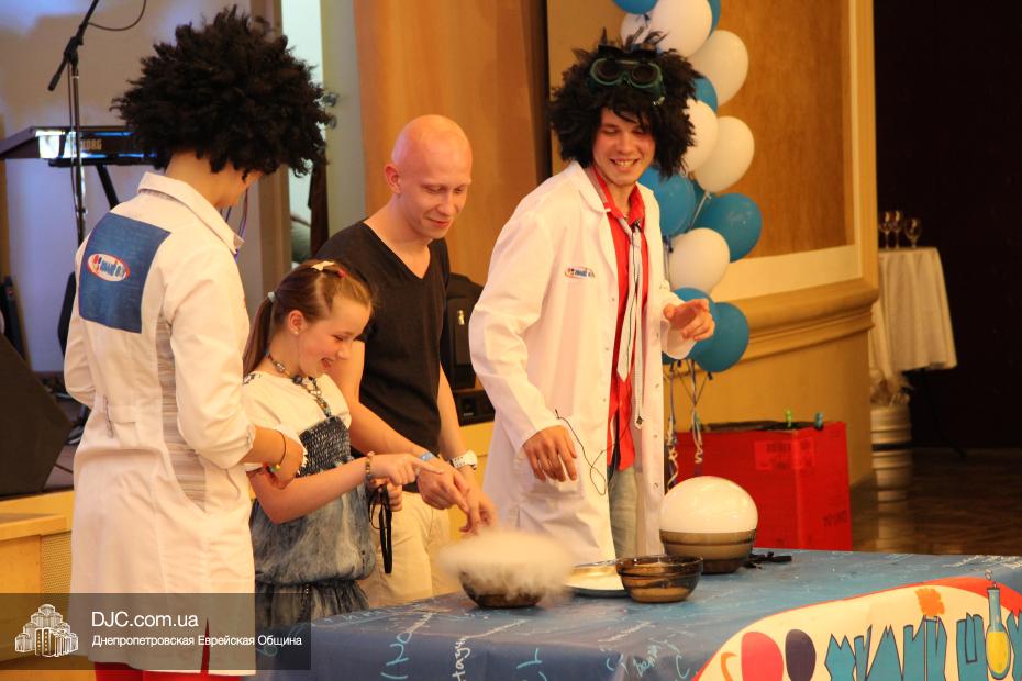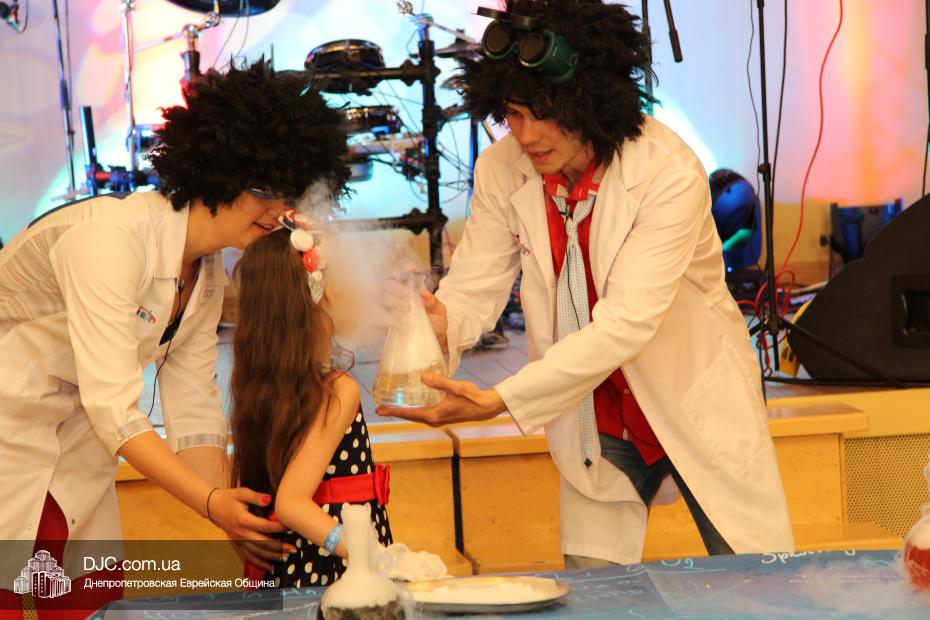 Завершил развлекательную часть дуэт «Химик — шоу», в ходе  выступления которого дети могли узнать, а взрослые вспомнить некоторые части школьной программы по курсу неорганической химии – например еще раз удивиться свойствам диоксида углерода, переходящего из твердой в газообразную форму, минуя жидкую, прямо при обычной температуре, или тому факту, что если в жидкий азот поместить розу, то она замерзнет, а если добавить воду, то будет много «дыма».