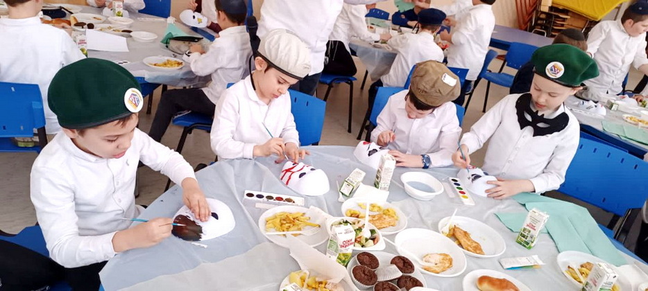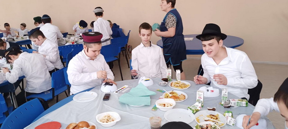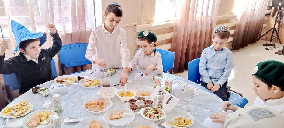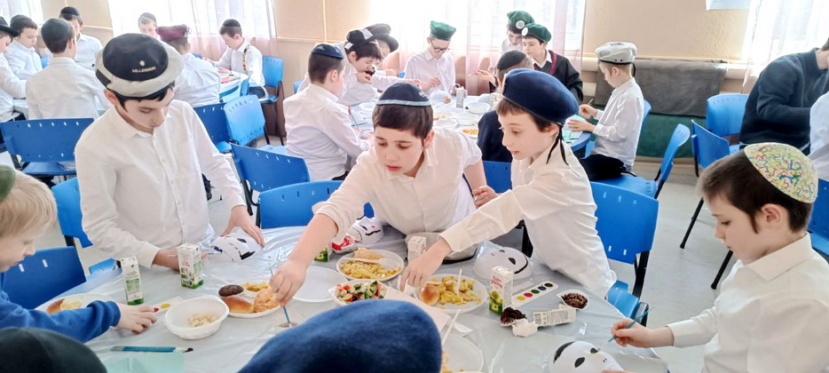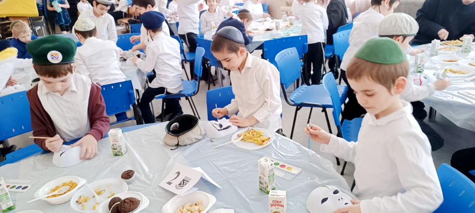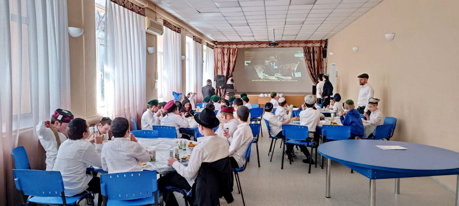 Ученики этого престижного учебного заведения для мальчиков посмотрели видеообращение Любавического Ребе, а затем слушали слова учителя раввина Леви Энгельсмана об истинной радости. Все это время они также не забывали вкусно покушать специально приготовленные праздничные блюда. Пирожки, маффины, печенье – чего только не было на столах!