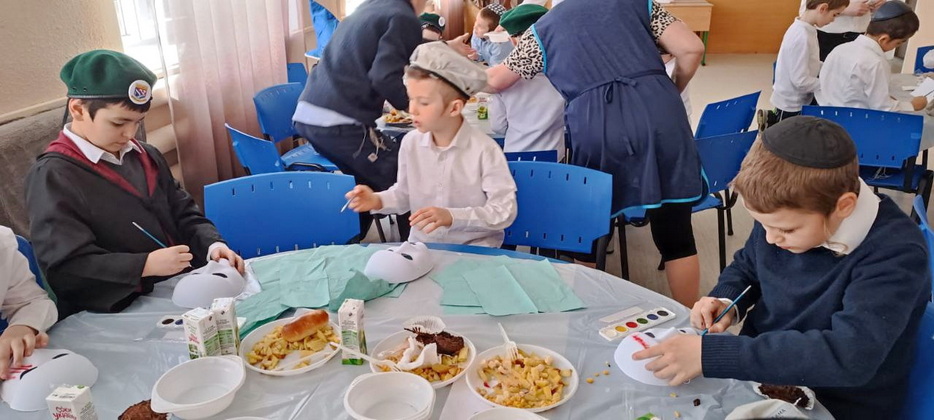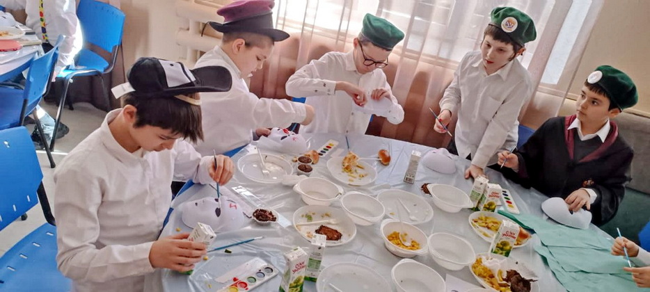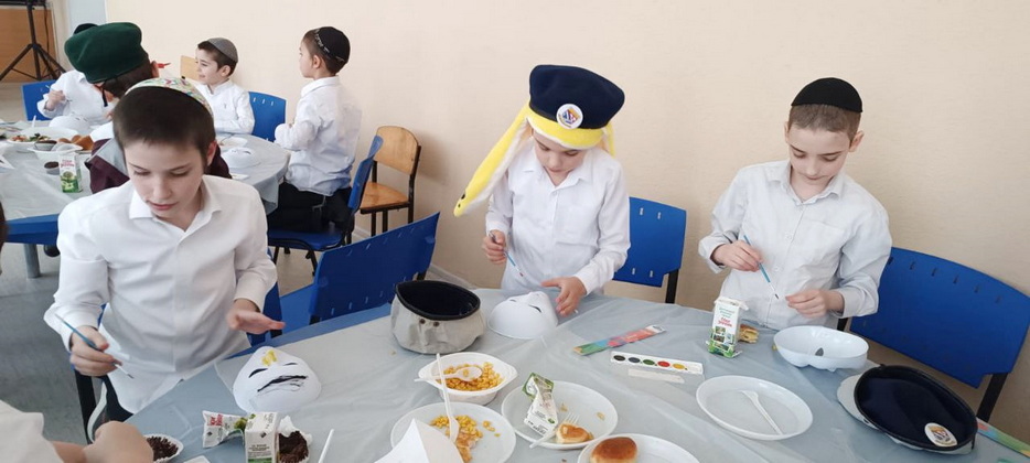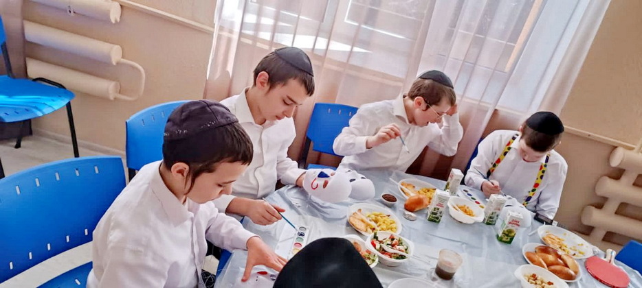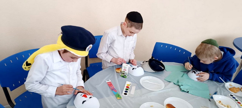 В качестве развлекательной части учителя приготовили для своих воспитанников занятие по росписи акварелью. Чтобы дети приумножали радость, это была не обычная роспись на бумаге, а украшение персональной пуримской маски. Занятие доставило мальчикам огромное удовольствие, а маски получились удивительными – и страшными, и смешными, и веселыми. Процесс росписи масок и порадовал ребят, и насмешил, главное – поднял градус радости и веселья во всем коллективе.