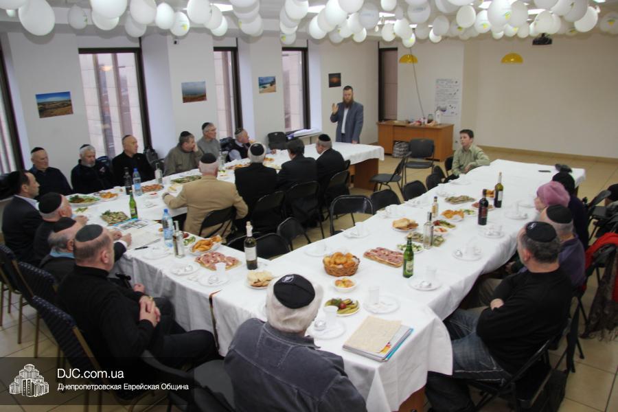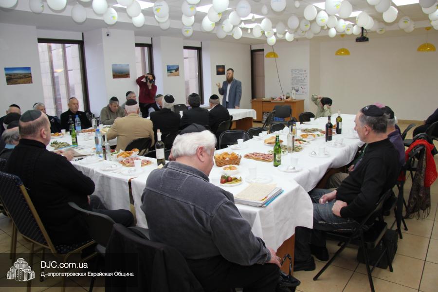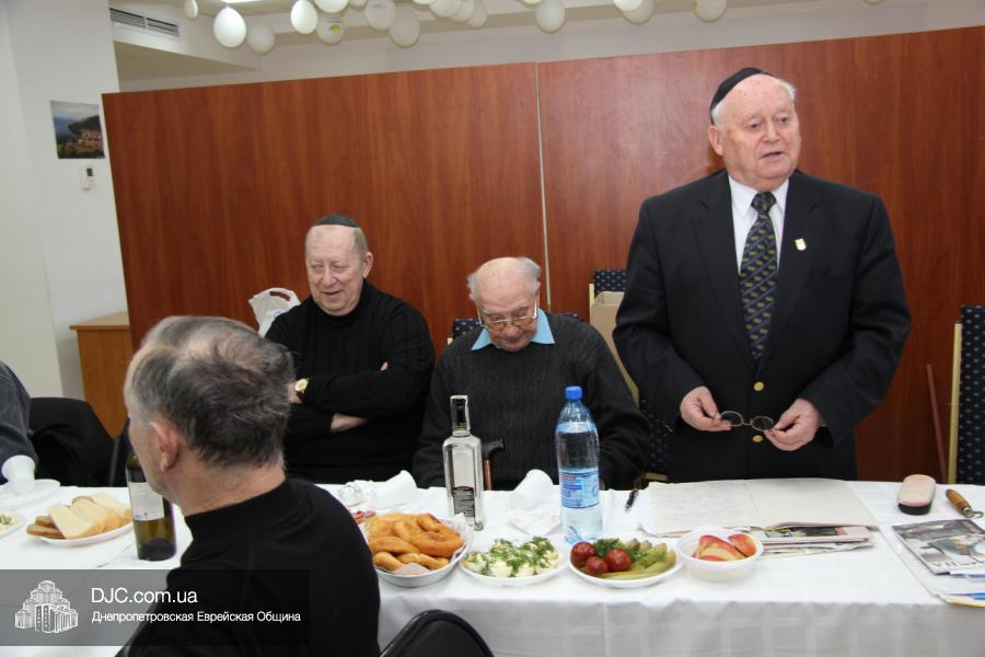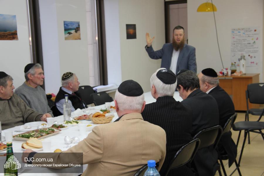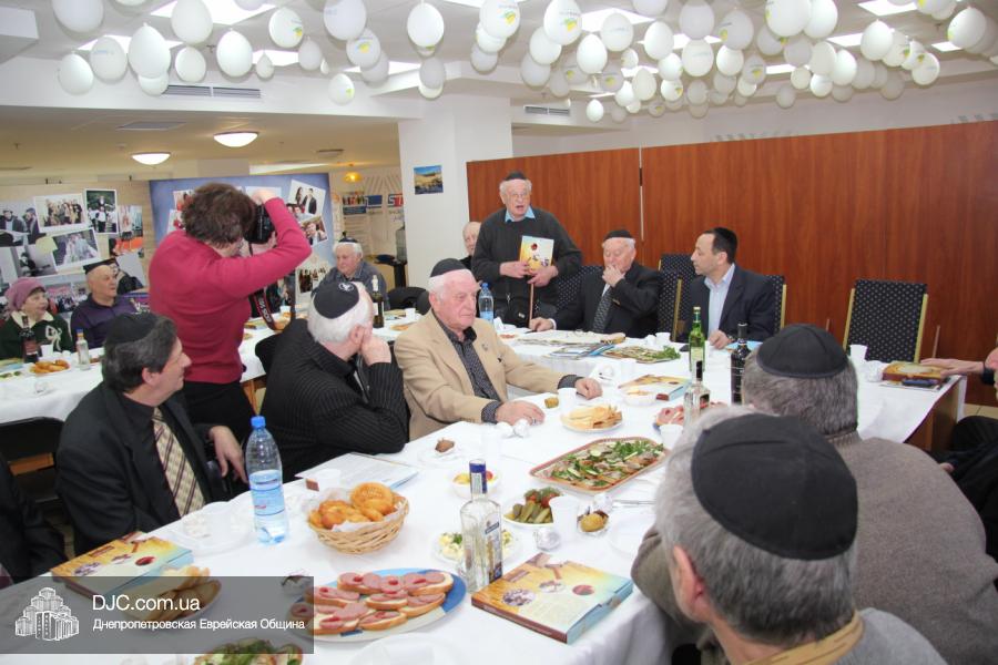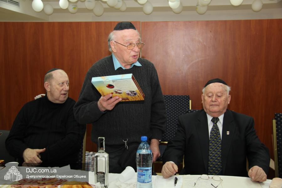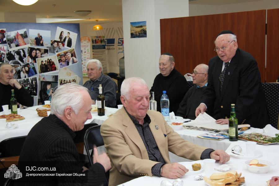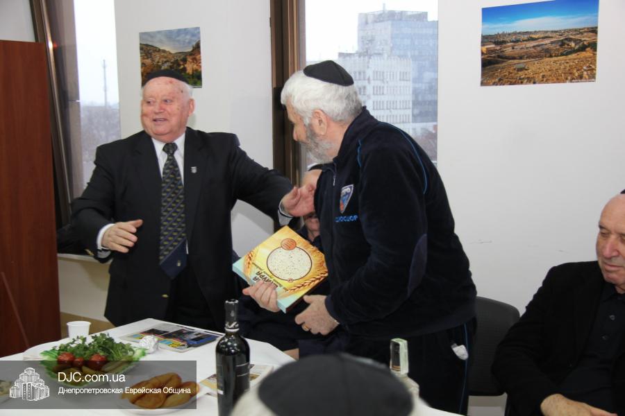Ключевым моментом мероприятия стал рассказ заместителя председателя правления «Шиурей Тора Любавич» Элиши Павлоцкого о празднике Песах и вручение подарка каждому ветерану – упаковки мацы-шмуры ручной работы, испеченной на днепропетровской мацепекарне «Тиферет а-мацот» и имеющей самый высокий статус кошерности.